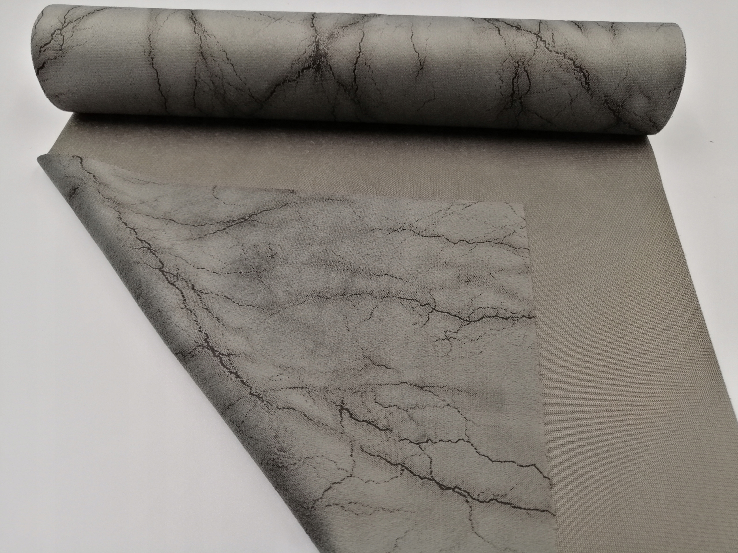 Декоративна тканина сірого кольору з мармуровим мотивом.