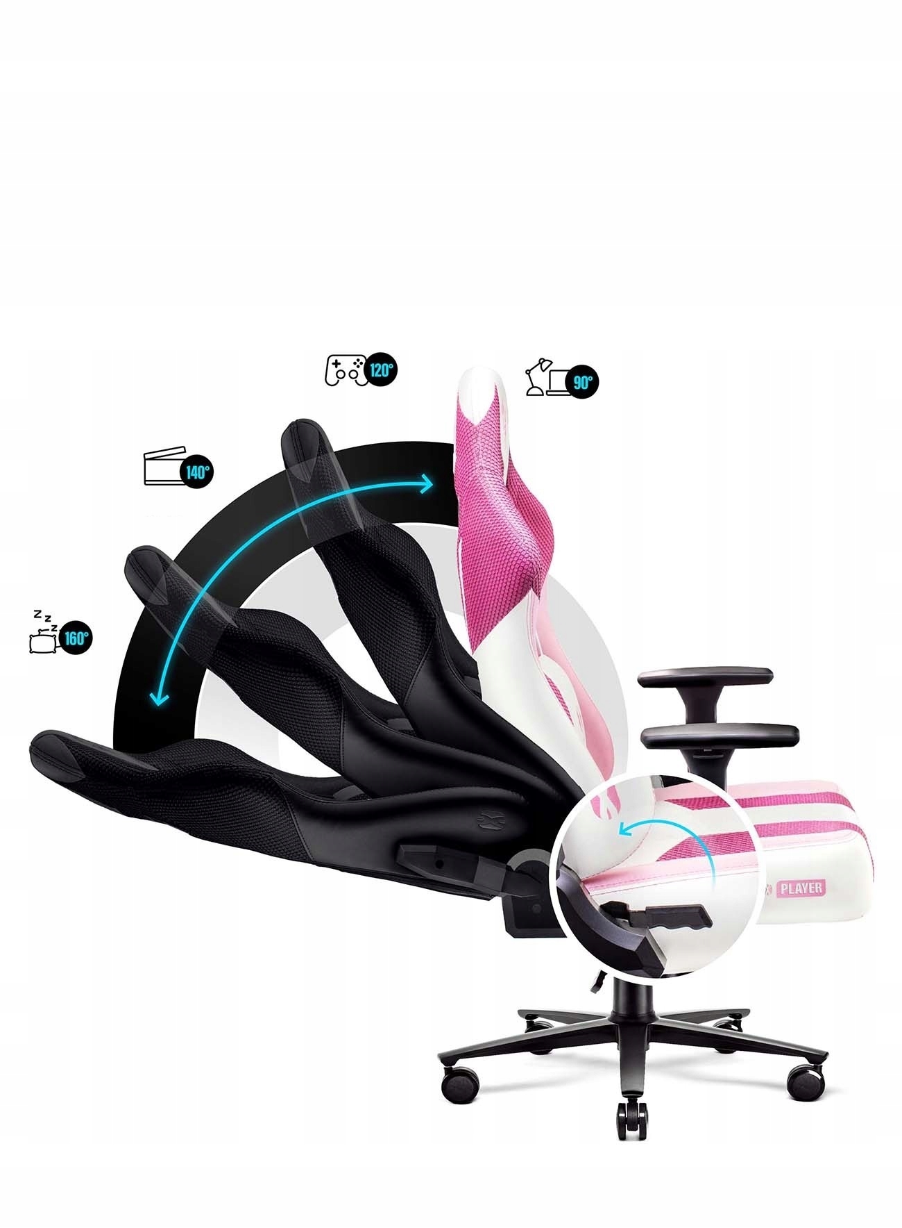 Зефірно-рожевий — це версія, яка справляє унікальне враження. на вас. Таке характерне та оригінальне поєднання ергономічної конструкції та унікального дизайну завжди викликає масу емоцій, тож погляньте на Player ще раз і уявіть, якої вражаючої трансформації зазнає ваша ігрова система.