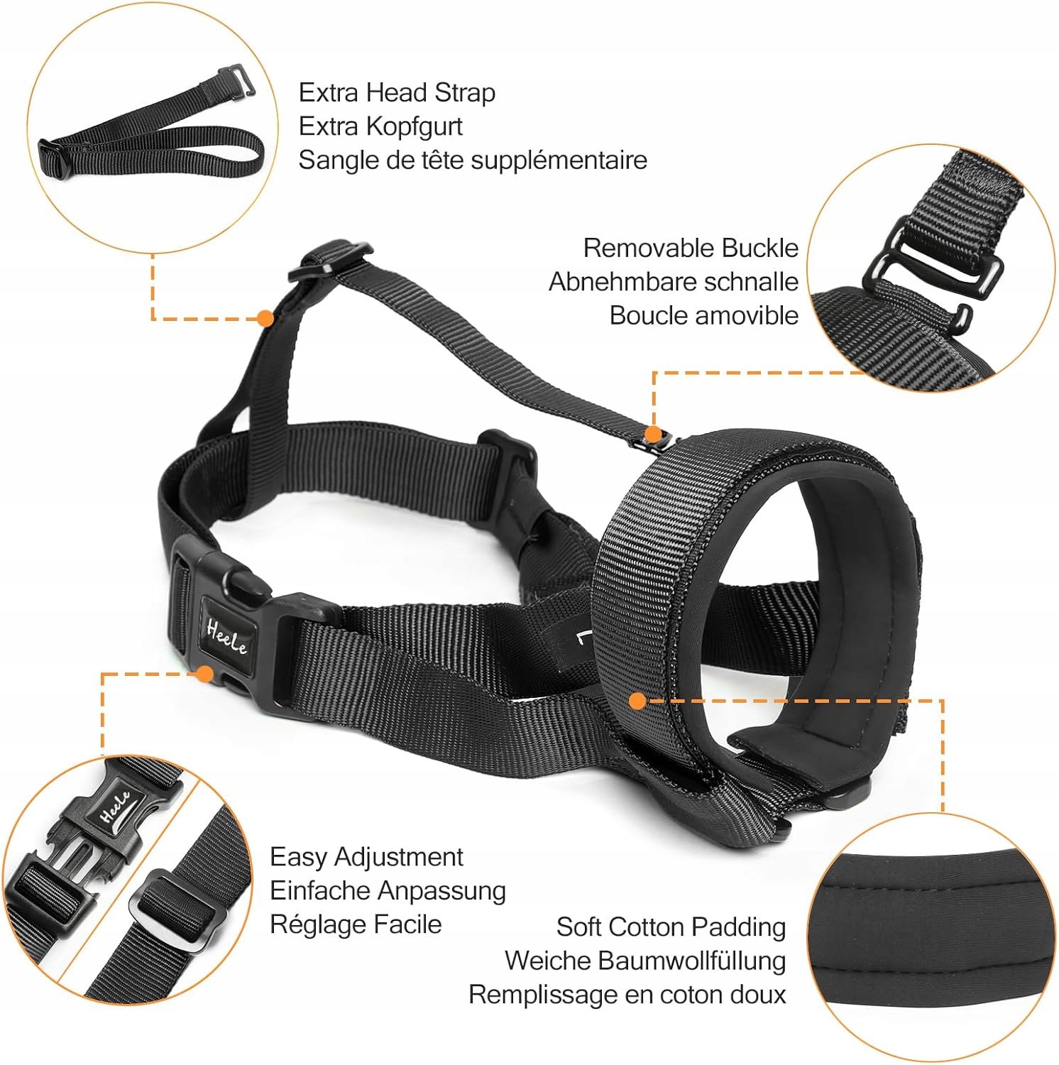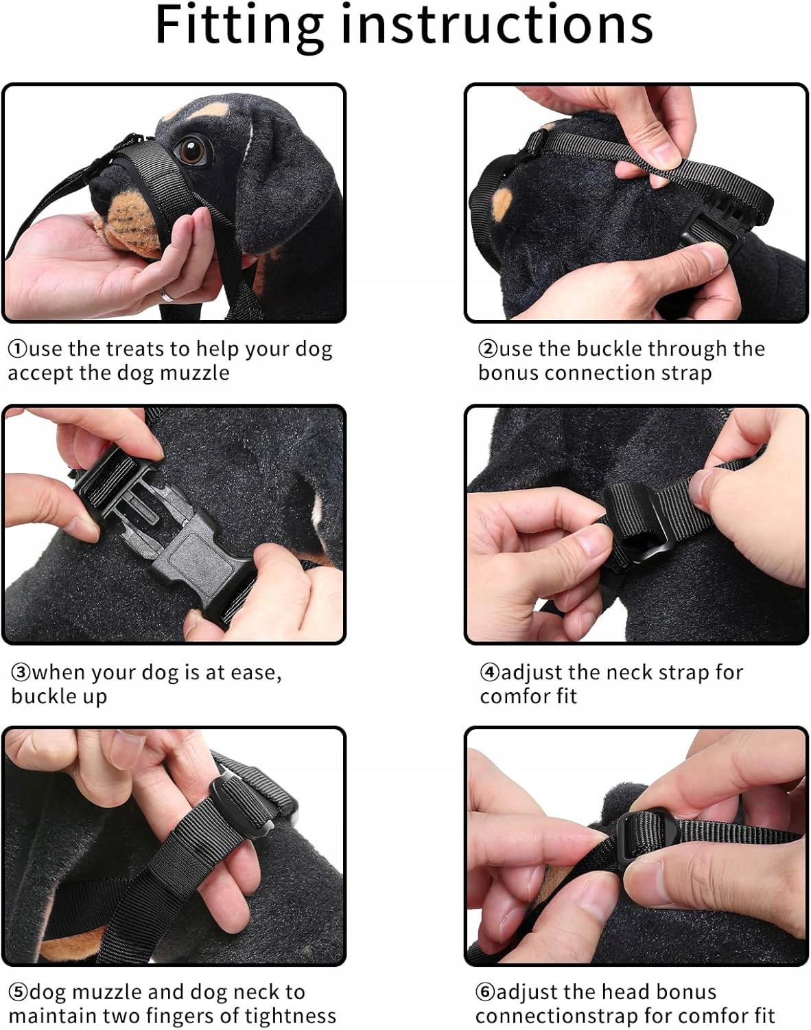 - М'яка підкладка: Надзвичайно м'яка неопренова підкладка над носом. Підкладка зменшує потертості собаки, захищає шкіру собаки, зручна і не -сяйва. Тримайте рот досить міцним, щоб контролювати його укус, але досить розпущений, щоб мати свободу задихань і позіхання.
