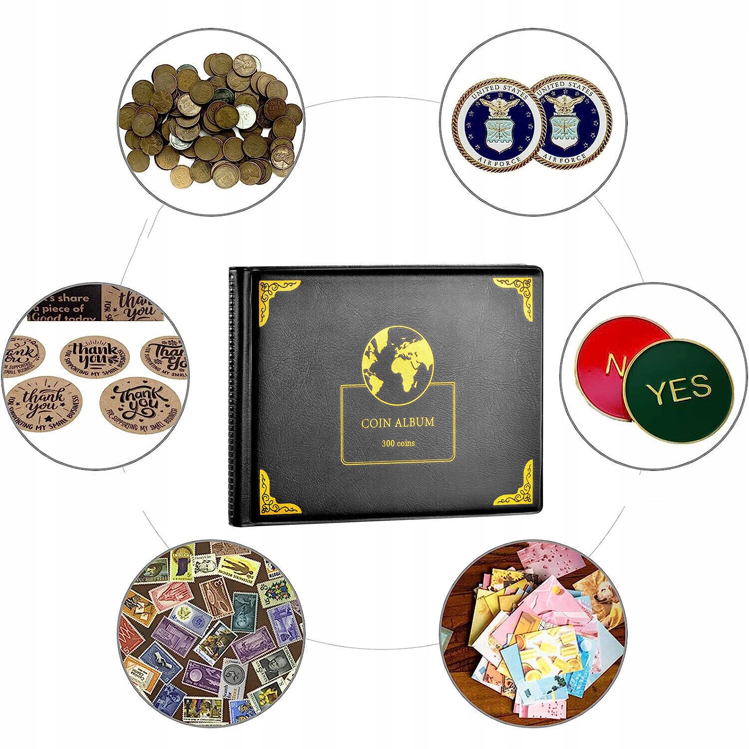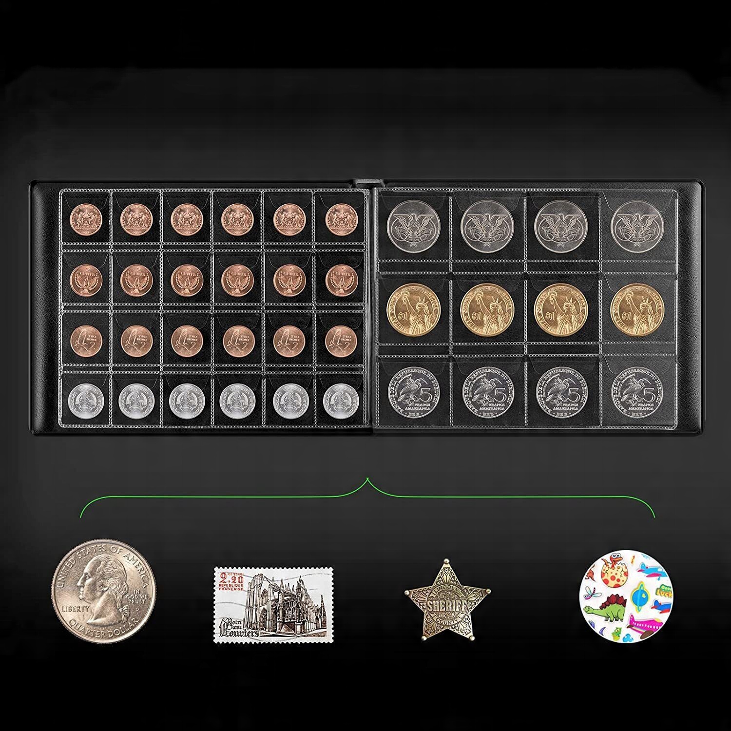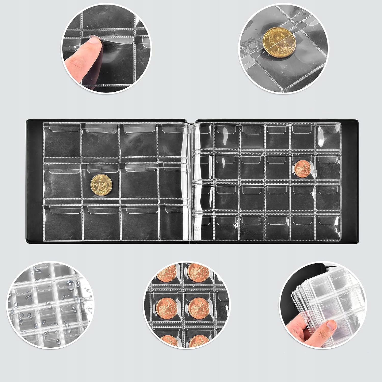 Матеріали для збору монет для колекціонерів, 300 кишень, чорний