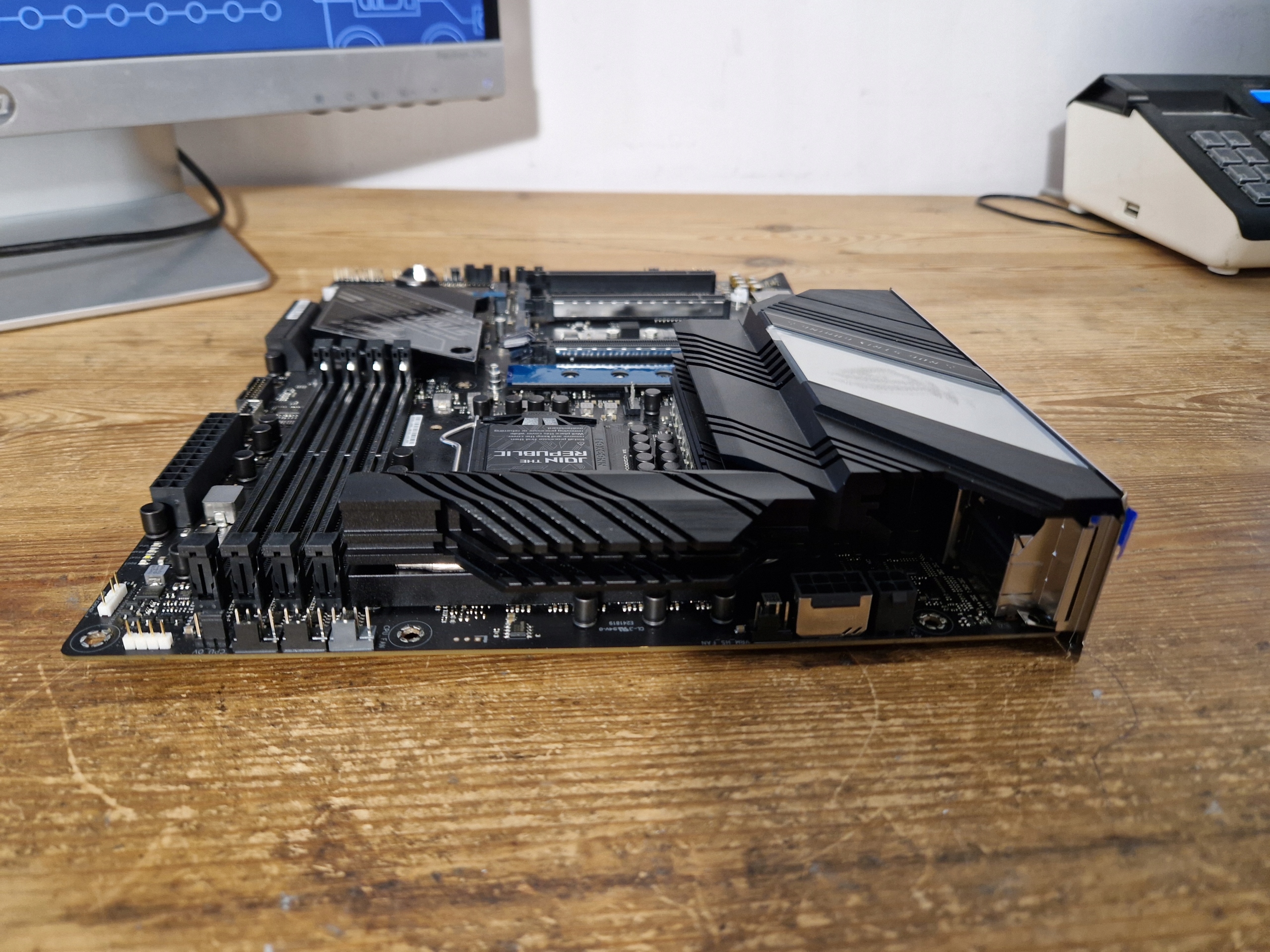 - Зовнішні роз'єми: 1 x Displayport, 1 x hdmi, 1 x сторона динаміка, 1 x Центральний динамік/subwoofer, 1 x Line in, 1 x line Out, 1 x MIN S/PDIF, 2 X USB 2.0.4 X USB 3.0.3 X USB 3.1.1.1 Type-C, 2 X SMA, 1 x Clear CMOS Кнопка, 1 x BIOS Flash Button