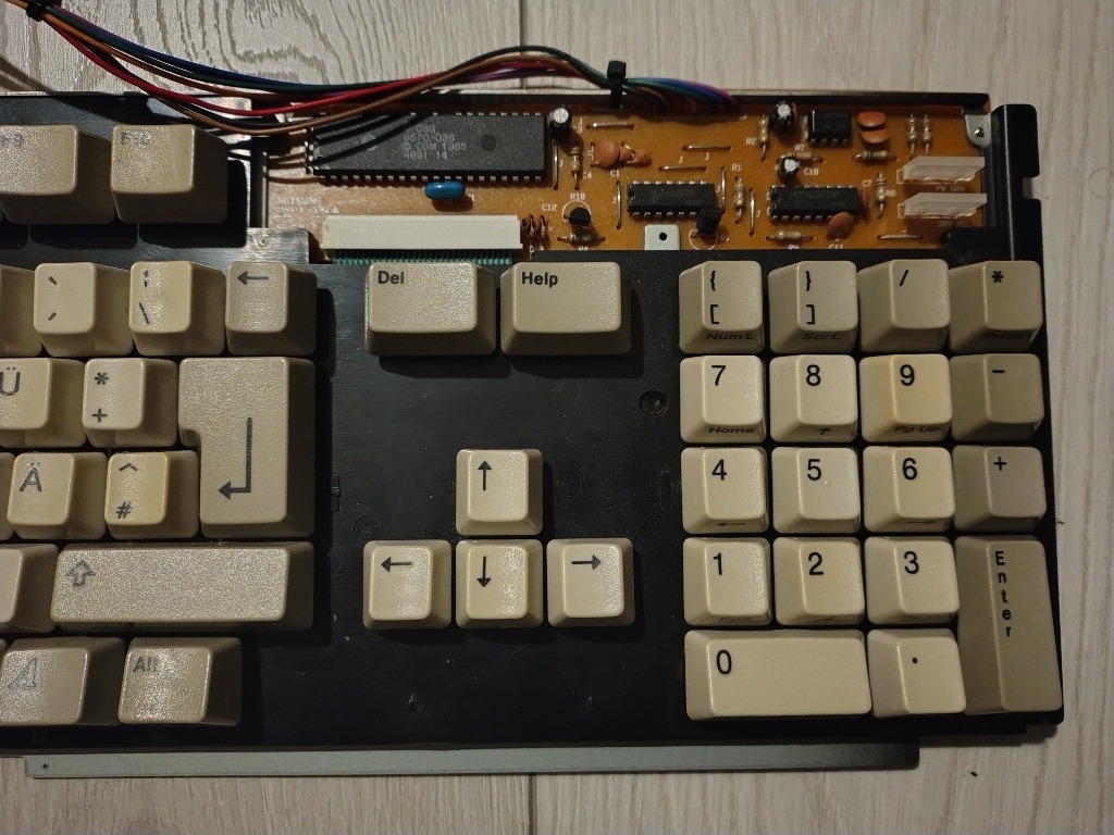В дуже хорошому стані враховуючи 35 років. Перевірений, повністю справний. Зелений + оранжевий світлодіод. Легке пожовтіння клавіш. Одна з найкращих клавіатур Amiga.