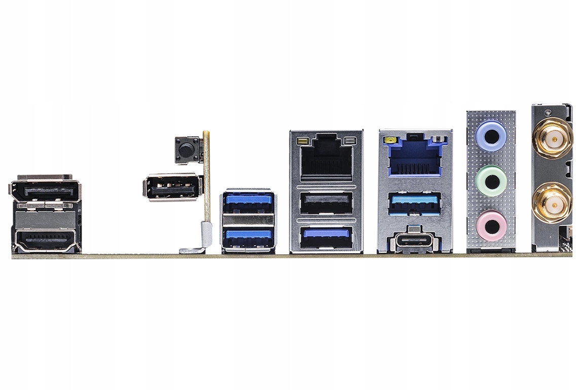- Зовнішні роз’єми: 1 x USB Type C / 4 x USB 3.2 Gen. 2 Type A / 2 x USB 2.0 Type A / 2 x RJ45 (LAN) / 1 x HDMI / 1 x DisplayPort / 3 x аудіо / 2 x роз’єм антени WiFi / 1 x кнопка Flash BIOS