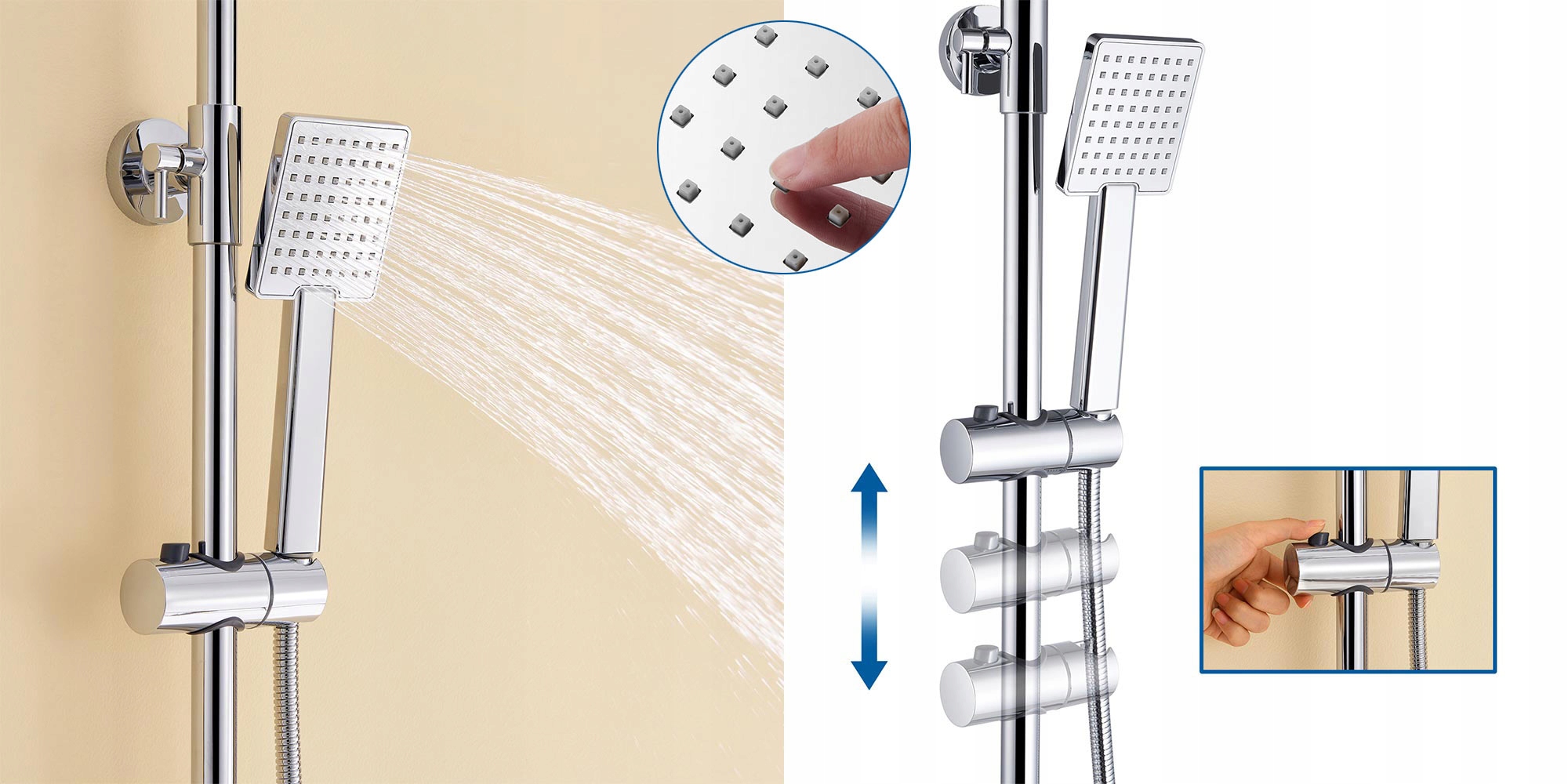 ✅ Будь -яка регульована висота душової ручки за допомогою затискача