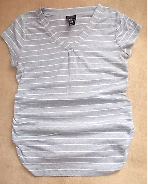 Велика колюжа для материнства з дуже хорошими видами, розтягування бавовни з білими смужками на сірому тлі. Декольте до шпигу було пришитий плісе. На бічних швах складки на зростаючому животик. Короткі рукави. Туніка дуже еластична в дуже розтягуванні, росте з животом - Супер, виглядає чудово і виглядає, набагато, набагато красивіше, ніж на фотографії !!!. Я щиро рекомендую !!!!