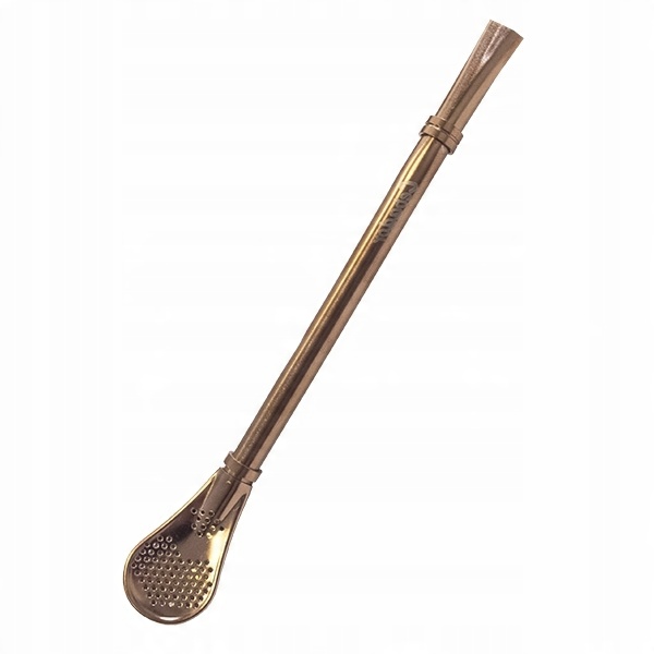 Дуже ретельно виготовлена бомбілья з нержавіючої сталі, злегка вигнута. Має фільтруючий елемент у вигляді сітчастого фільтра. Ця проста конструкція забезпечує хорошу фільтрацію та безпроблемне пиття. Мідний колір.