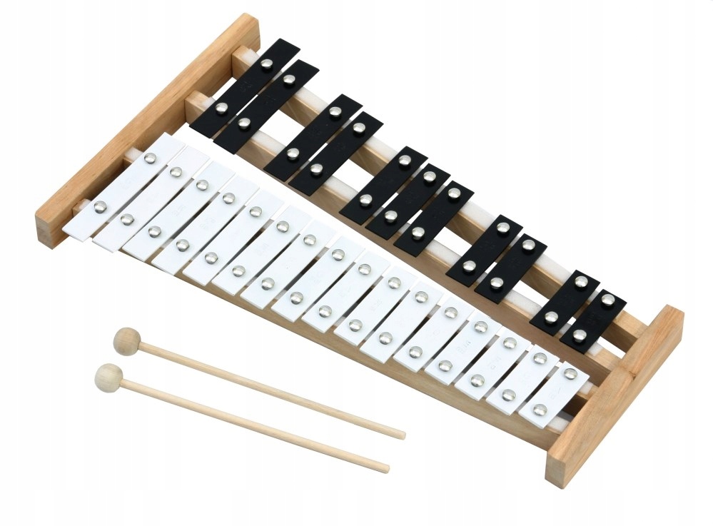 Дві повні октави (27 тонів), на кожній пластині назва звуку разом з двома дерев'яними паличками довжиною приблизно 21 см. Добротні польські дзвони прослужать роками. Дзвони налаштовані електронно.