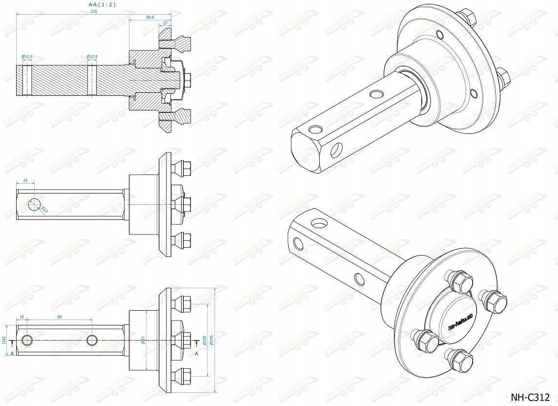 - відстань між монтажними отворами (шип): 90 мм (для гвинтів М12).