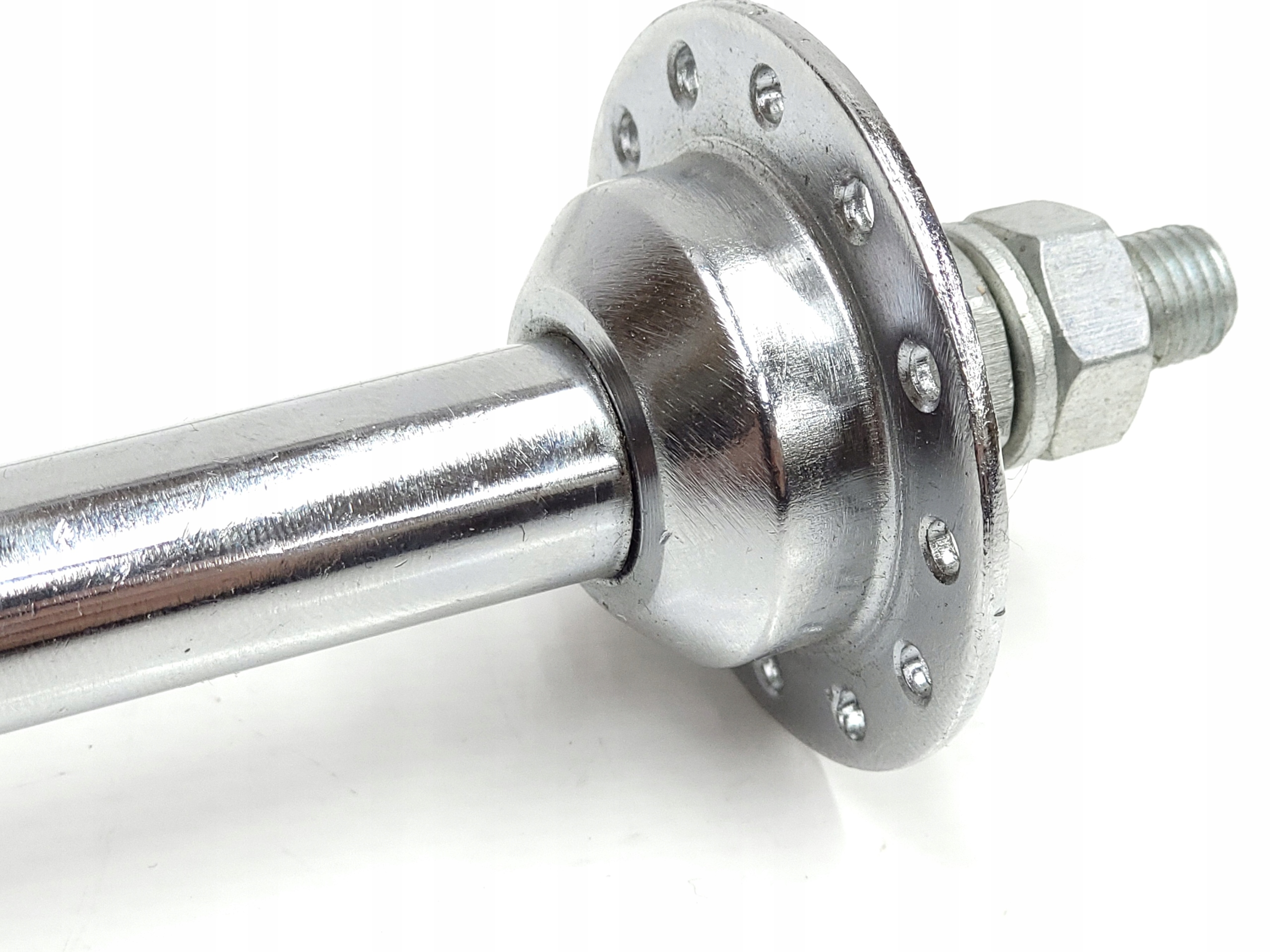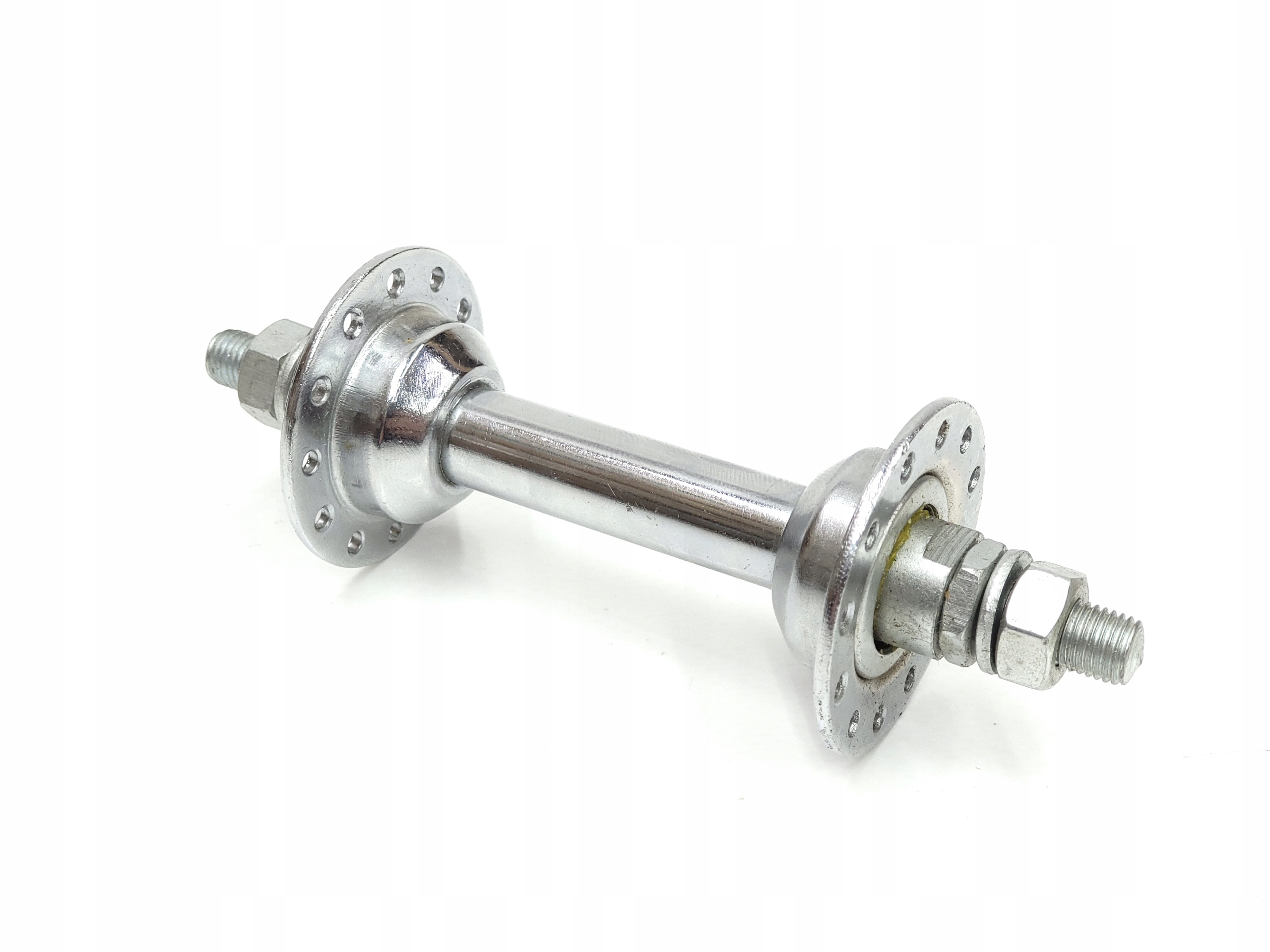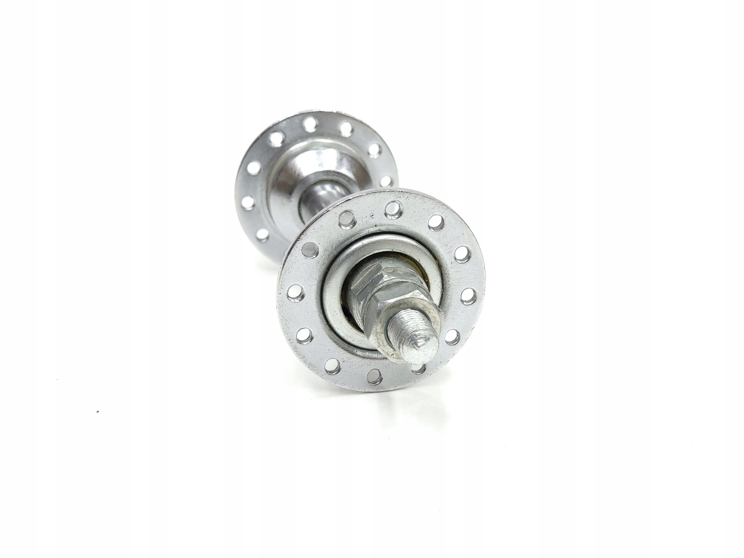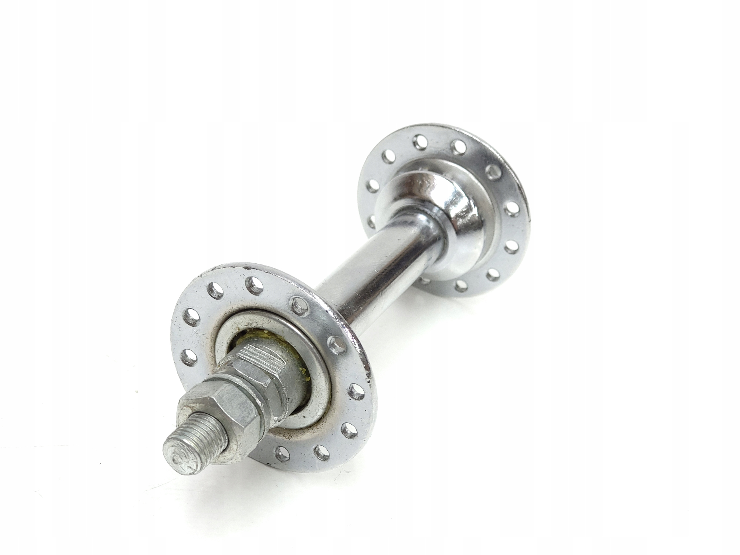 Ми пропонуємо пошкоджену втулку переднього колеса для деталей велосипеда. ДЕФЕКТ: одна з мисок відпадає, в іншому повно