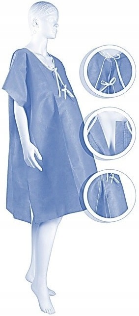 Сорочка виготовлена з м'якого, приємного на дотик флізеліну SMS. Цей матеріал непрозорий, паропроникний і антистатичний.