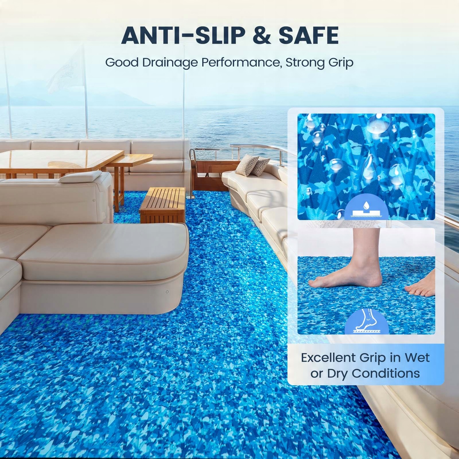 Постійна EVA MAT захищає поверхні łódź, відпочиваючих та будинків. Підходить для склопластикових колод, сходів кемперів, гаражних підлог, терас біля басейнів. Нафтовий стійкий, вицвітаючи під впливом УФ та сольовій корозії - ідеально підходить для риболовлі, кемпінгу та самостійних проектів.