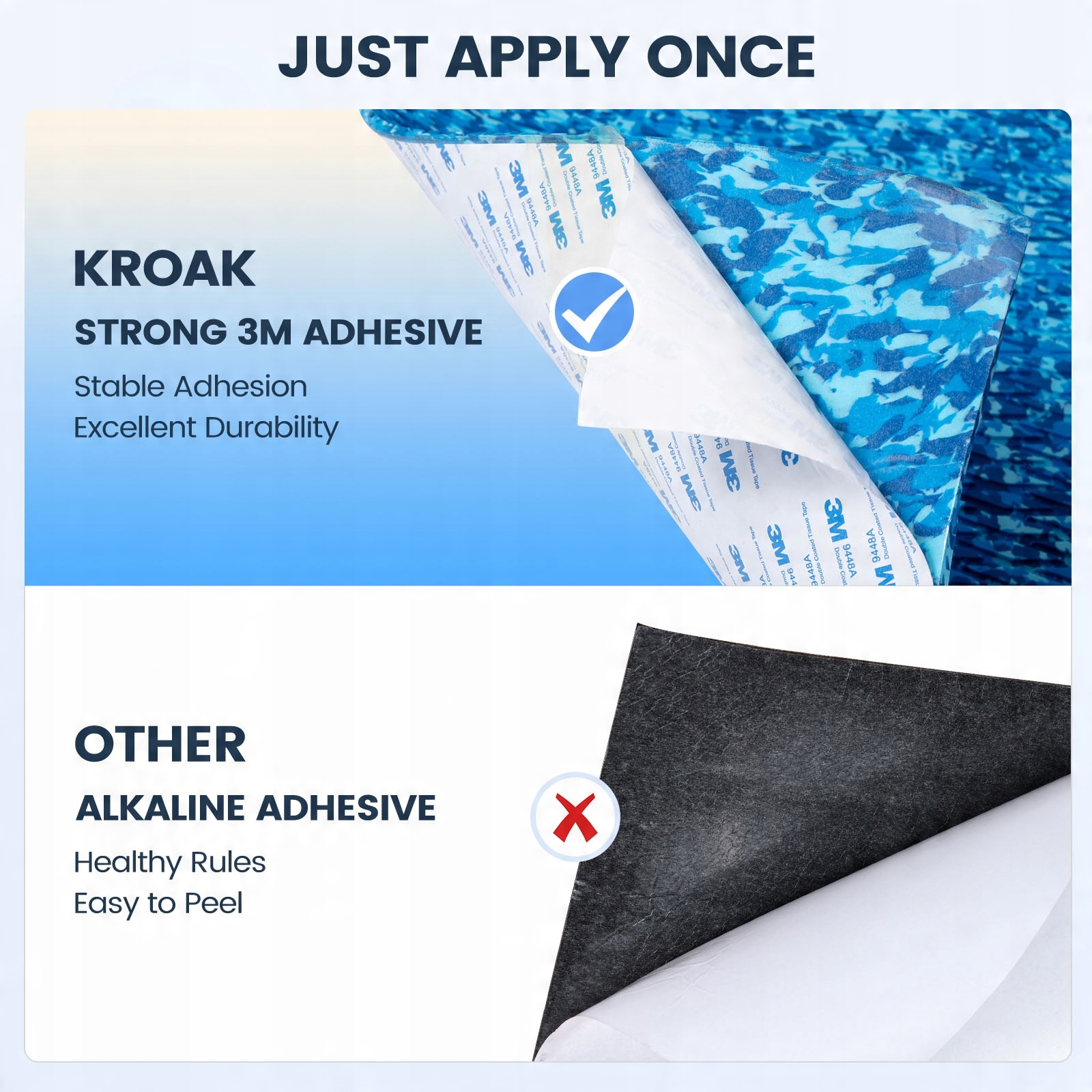 mata kroak, виготовлена з пінопласту Eva, має міцний 3 -метровий клей, який ідеально прикріплений до різних поверхонь - склопластику, алюмінію, деревини тощо. Він підтримує прихильність навіть при високих та низьких температурах та у вологому середовищі, що зменшує потребу в підтримці.