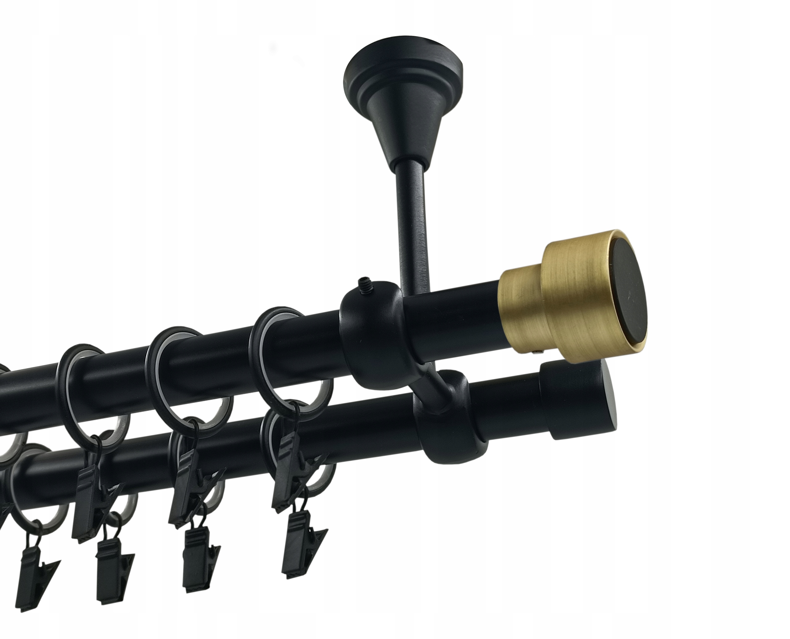 НА ЦЬОМУ АУКЦІОНІ ВИ КУПУЄТЕ КОМПЛЕКТ ДВІЙНИХ металевих карнизів для стелі з колекції BLACK&GOLD з діаметром труби 19 мм, ЧОРНОГО МАТОВОГО, з кінцем STAMP, довжиною 300 см.