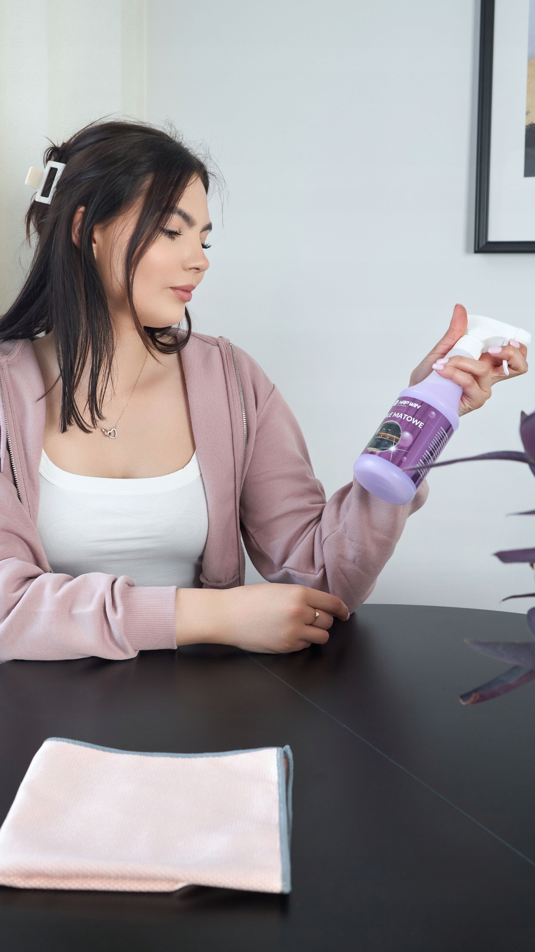 Засіб для догляду та чищення матових поверхонь, меблів , фасади , стільниці тощо. Очищає матові поверхні, не залишаючи на них смуг і відбитків пальців. Має підвищені знежирюючі властивості. Ефективно видаляє пил, бруд, знебарвлення та жирні сліди. Завдяки своїм антистатичним властивостям затримує процес осідання пилу. Освіжає очищені поверхні, залишаючи приємний аромат.