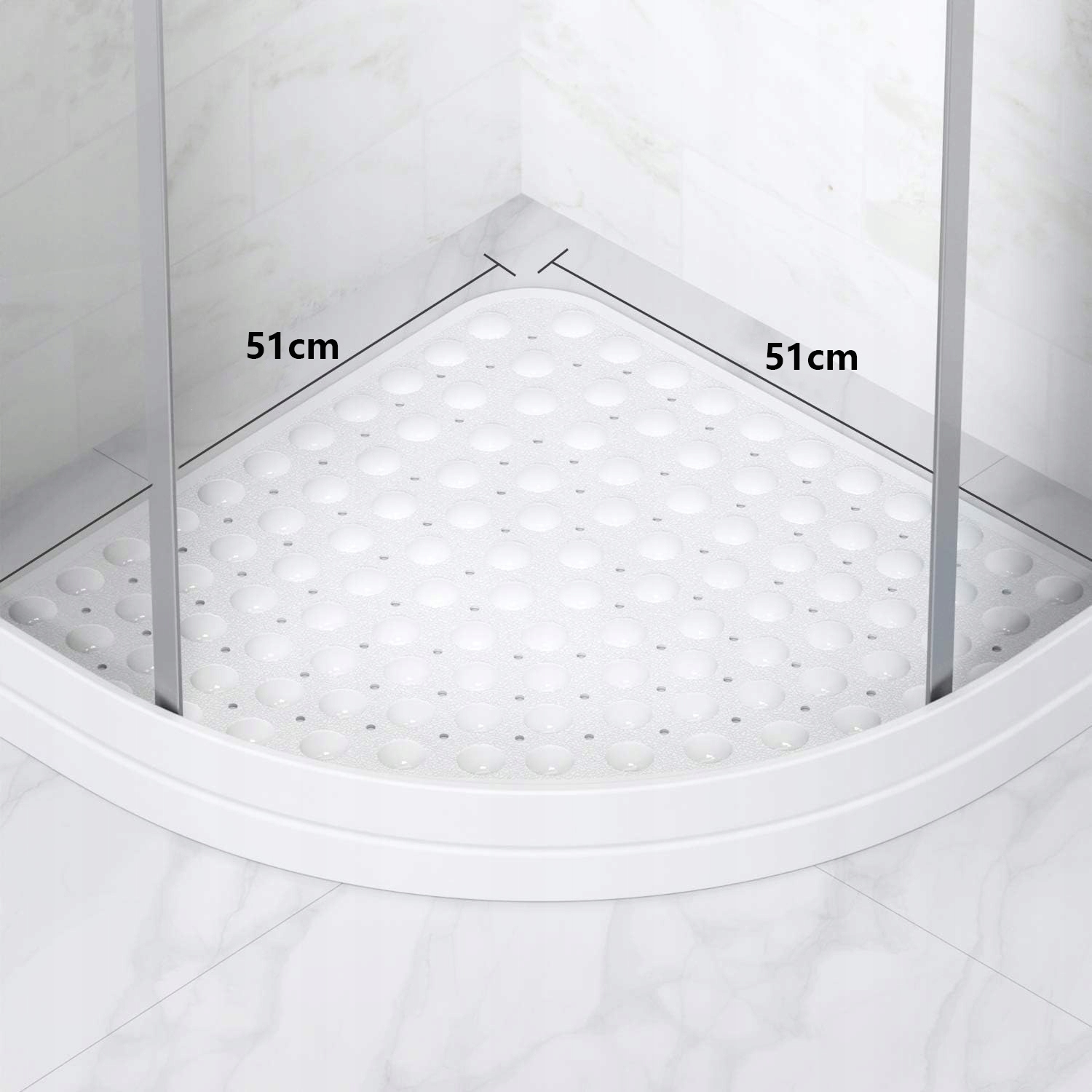 💧💧💧 Безпечний і некосла для душу: розмір нашого анти -слизаючого душу, квартал району має розміри 51 х 51 см, підходить для душового душу, невеликих ванн, дітей та старенів. Наш трикутний килимок для душу має багато текстур, що не належать до ковзання, а задня сторона має сильні та сильні присосні чашки. Висока силова всмоктування означає, що килимок для душу, що не є, не рухається легко.