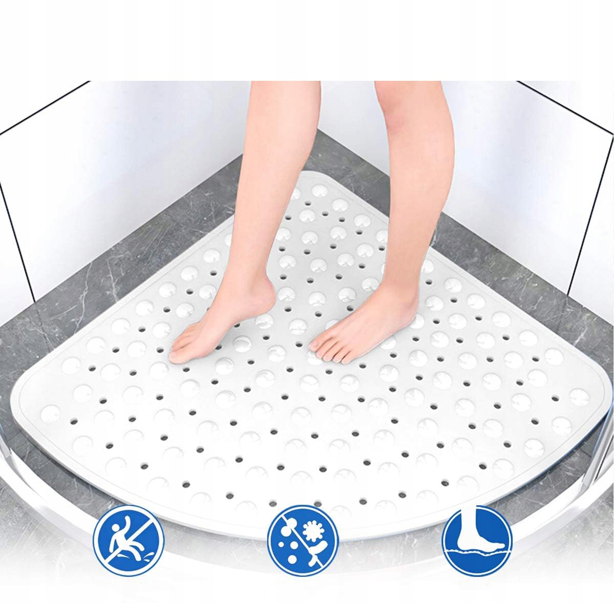 💧💧💧 Відмінний дренаж: Трикутний килимок для ванної кімнати проти слизу. Надлишок води може швидко стікати. Ви можете швидко зберегти ванну кімнату сухим та очищенням, щоб забезпечити безпечний душ. Крім того, у формі немає шансів