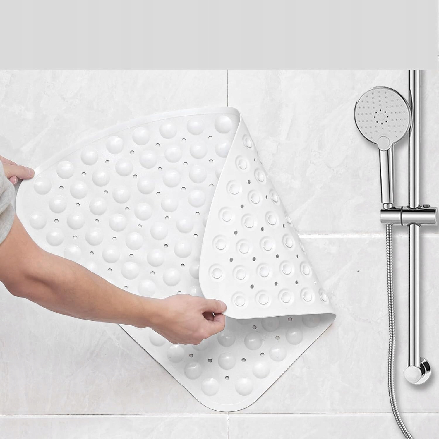 2. Поверхня підлоги душу повинна бути чистою, без бруду, плям, масел. Не використовуйте квадратний килимок для душу на структурній поверхні, оскільки присоски не тримаються правильно, як згадувалося в описі.