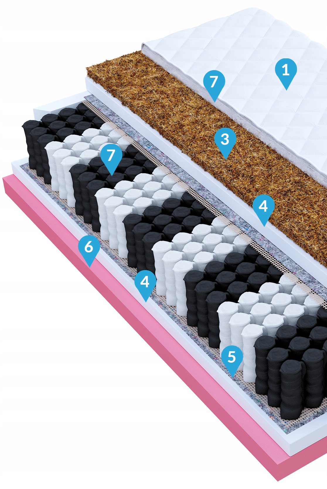 Пружин Multipocket значно більше, ніж у звичайних пружинах Pocket Spring, вони також мають зменшену діаметр, забезпечуючи більшу кількість точок підтримки. Завдяки зонам різної жорсткості забезпечує ергономічне положення тіла під час відпочинку. Незалежне функціонування пружин усуває ефект вигину великої поверхні матраца під час тиску на його маленьку поверхню, тому будь-яке обертання чи свердління не буде відчутно іншою людиною.