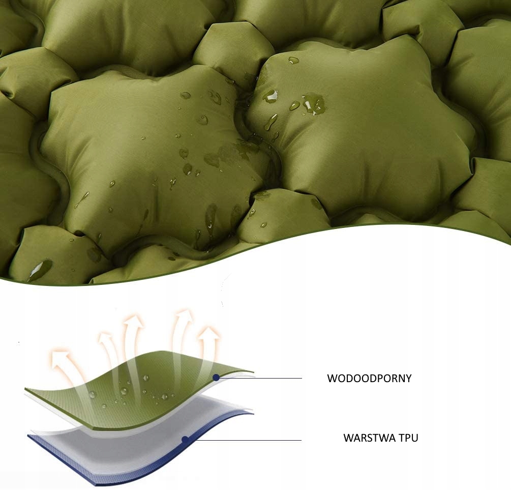 - Матрац надзвичайно зручний, теплий і забезпечує чудову ізоляцію від землі. Повітряні камери у формі ромба забезпечують відмінний розподіл повітря в камерах і ергономічність використання