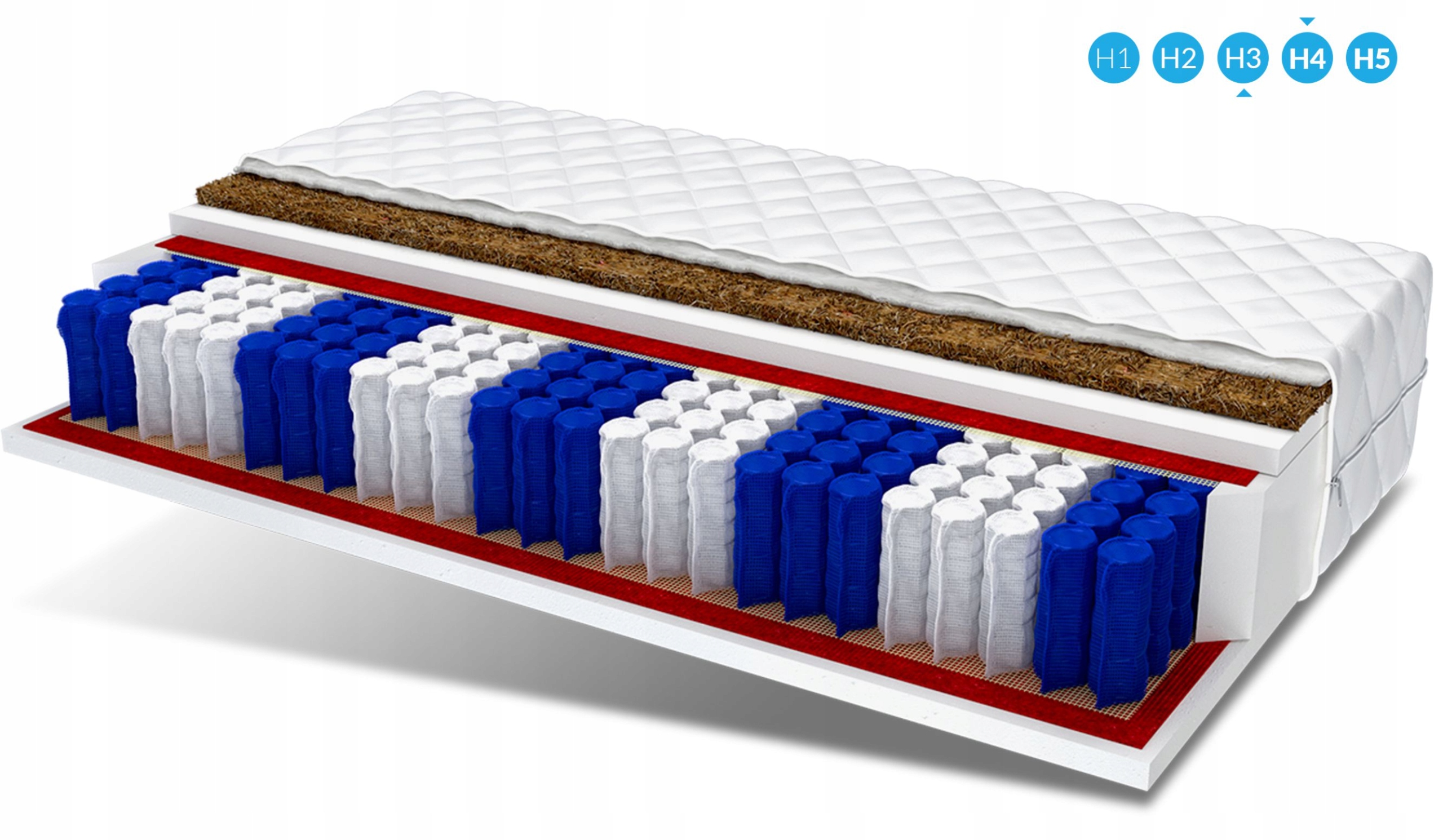 Це натуральна, екологічна сировина, отримана зі шкаралупи кокосового горіха. Кокосові волокна легкі і повітряні, а також дуже міцні і гнучкі, стійкі до вологи і деформації. Вони покращують циркуляцію повітря всередині матраца, запобігаючи надмірному потовиділенню. Кокос також має протиалергічні властивості та запобігає розвитку грибків і кліщів.
