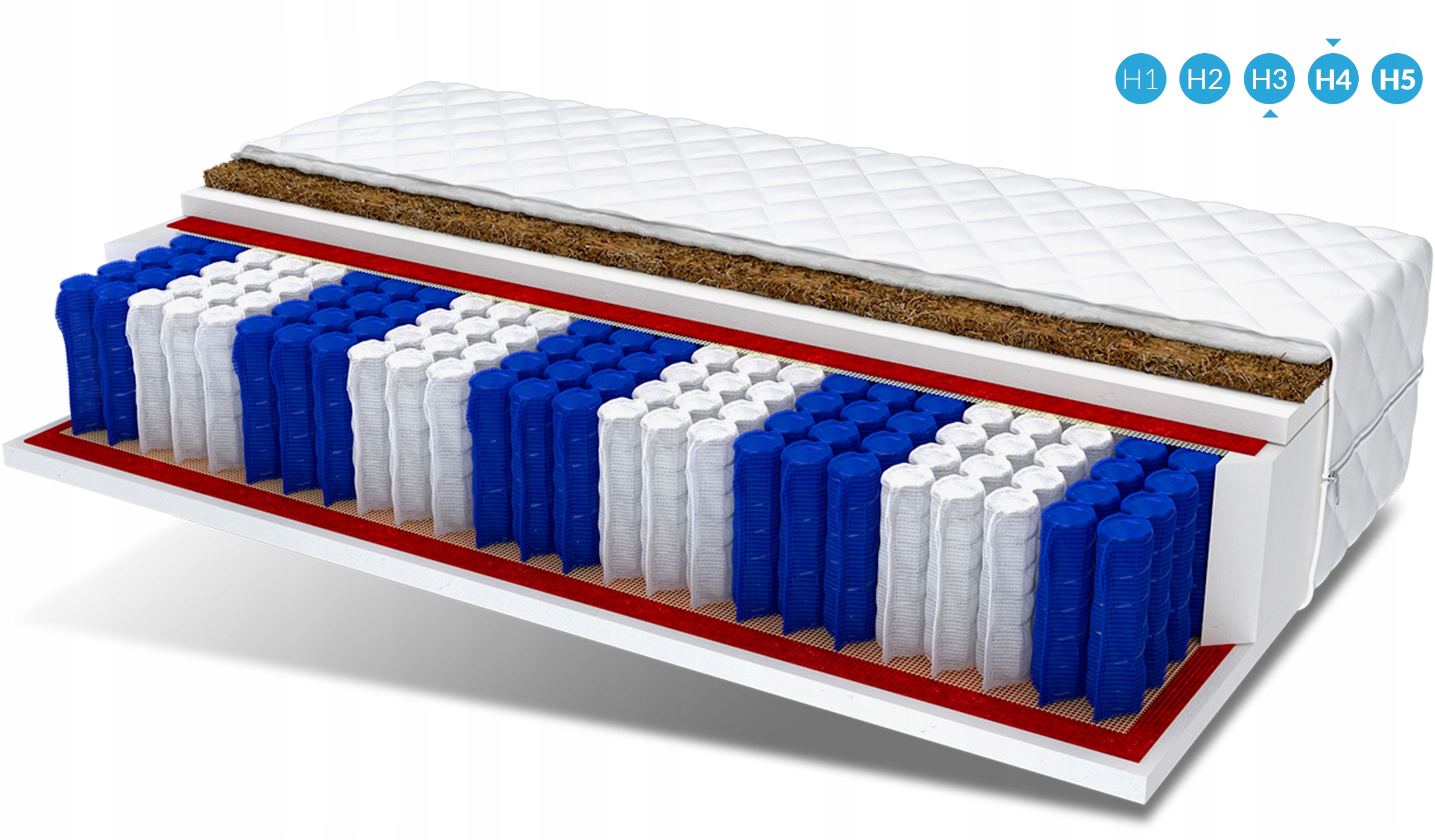 Це натуральна, екологічна сировина, отримана зі шкаралупи кокосових горіхів. Кокосові волокна легкі і повітряні, а також дуже міцні і гнучкі, стійкі до вологи і деформації. Вони покращують циркуляцію повітря всередині матраца, запобігаючи надмірному потовиділенню. Кокос також має протиалергічні властивості та запобігає розвитку грибків і кліщів.