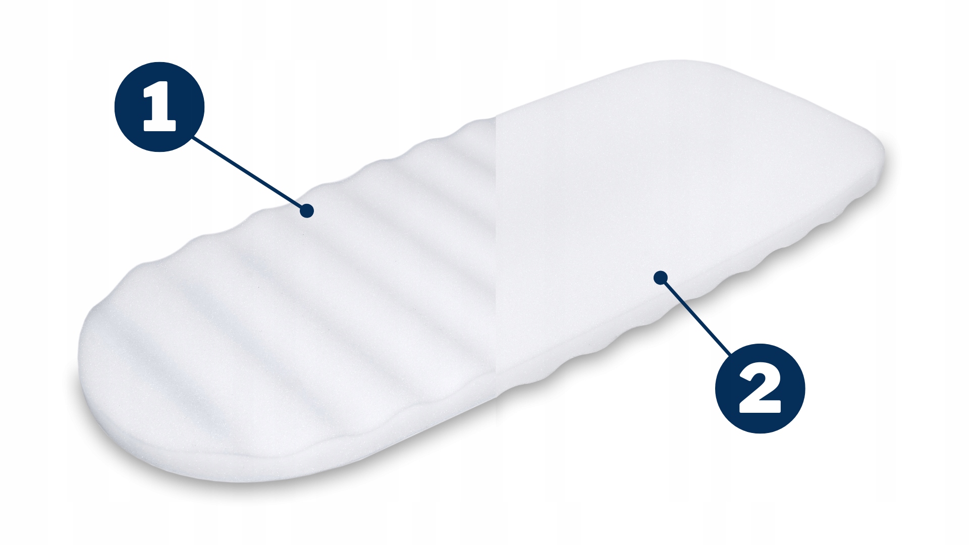1. Профіль хвиліврізаний у піну з одного боку матраца пом’якшує її до жорсткості H2 (середньої жорсткості) та покращує вентиляцію, забезпечуючименше поту для користувача
