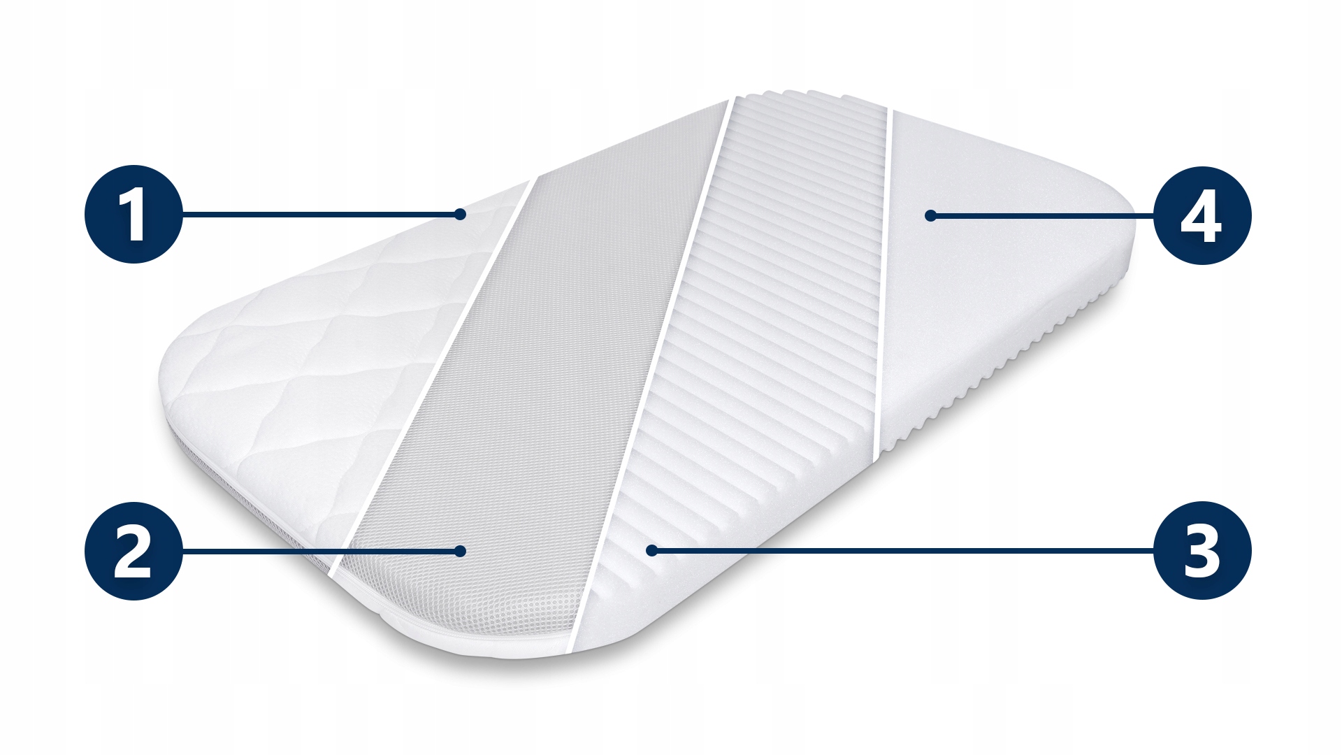 2️⃣Плоска сторона матраца надає йому вищу твердість H3 (жорсткий) і стабілізує його