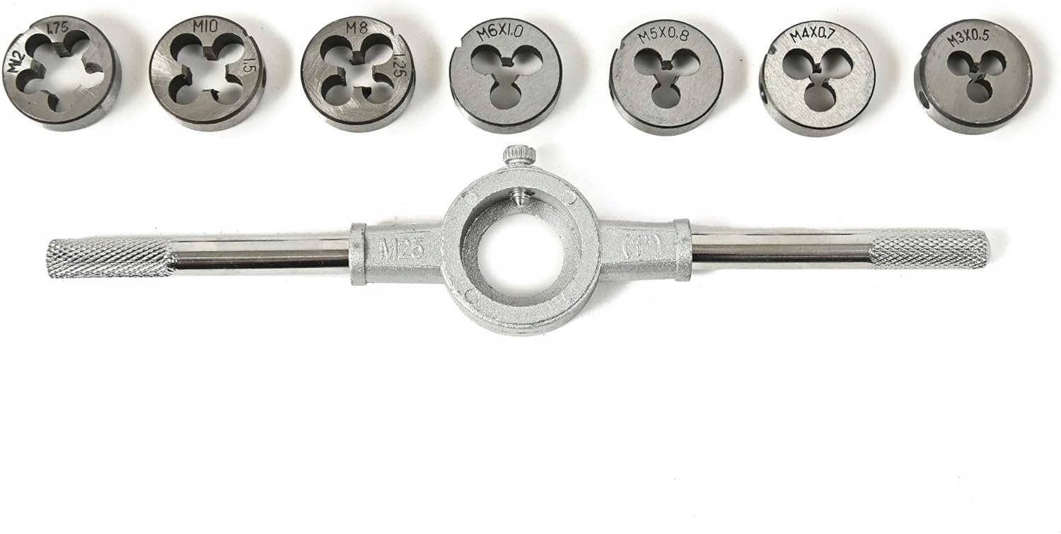 • У набір входять мітчики для нарізання внутрішньої різьби та нарізні плашки для зовнішньої різьби