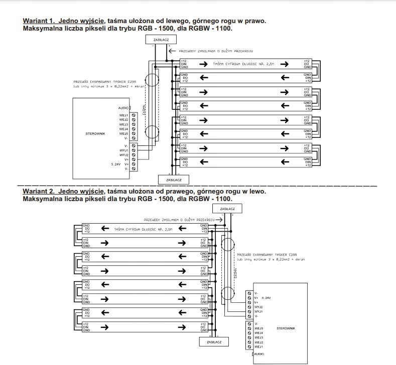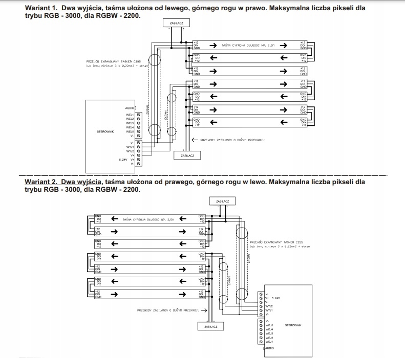 - Підтримує цифрові світлодіоди RGB і RGBW,