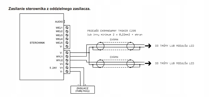 - напруга живлення: 5..24V / 150mA DC. Роз’єм живлення: гвинтові клеми,