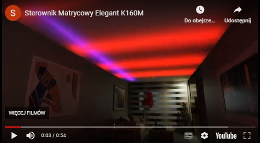 Контролер матриці K160M від Elegant — це пристрій для управління та управління світловими ефектами на матрицях, виготовлених з цифрових стрічок або світлодіодних модулів. Цей контролер дуже часто використовується для підсвічування підвісних стель, де матриця забезпечує його ефективне підсвічування. Використовуючи контролер матриці, ми можемо генерувати багато анімованих ефектів, налаштованих відповідно до розташування матриці та її розміру. Матричний контролер К160М настільки універсальний пристрій, що може працювати з усіма цифровими світлодіодними стрічками та програмованими світлодіодними модулями у версіях RGB та RGBW. Контролером можна керувати 3 способами: за допомогою пульта дистанційного керування, зовнішніх кнопок дзвінка або локальної клавіатури.