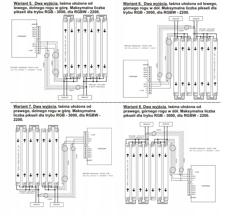 - кількість пікселів RGB: 3000, RGBW: 2200,