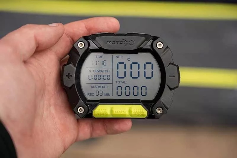 Окрім того, що показує вагу в окремій сітці, ви також завжди маєте вигляд суми ваги від усіх сітків. Модель Pro має дві параметри тривоги (єдиний сигнал тривоги та циклічна сигналізація). На великому РК -дисплеї відображається час, секундомір, тривога, мережева вага та загальна вага