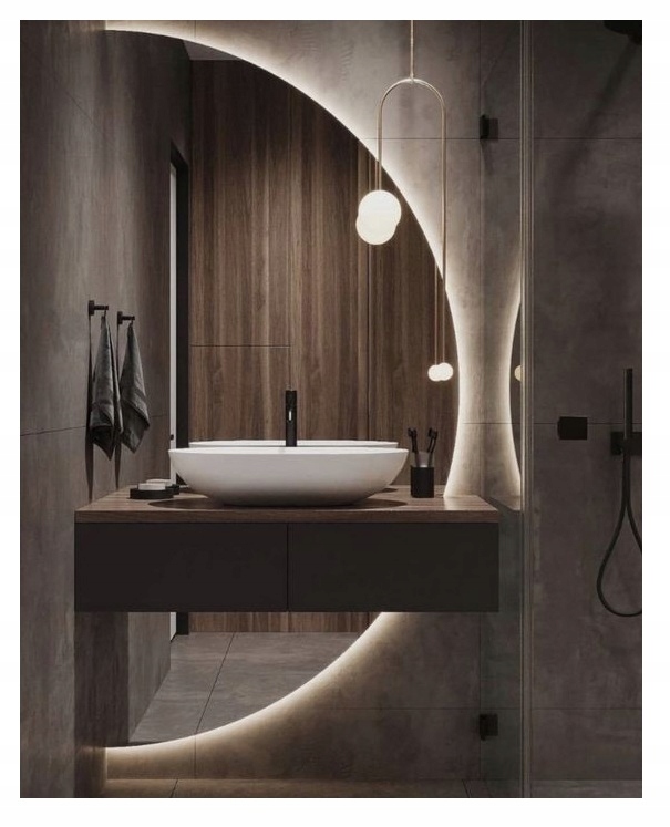• w łazience lustro Jest niezbędne do codziennych czynności takich jak mycie, golenie czy nakładanie makijaju. Umywalką lub w formie lustrzanej szafki.