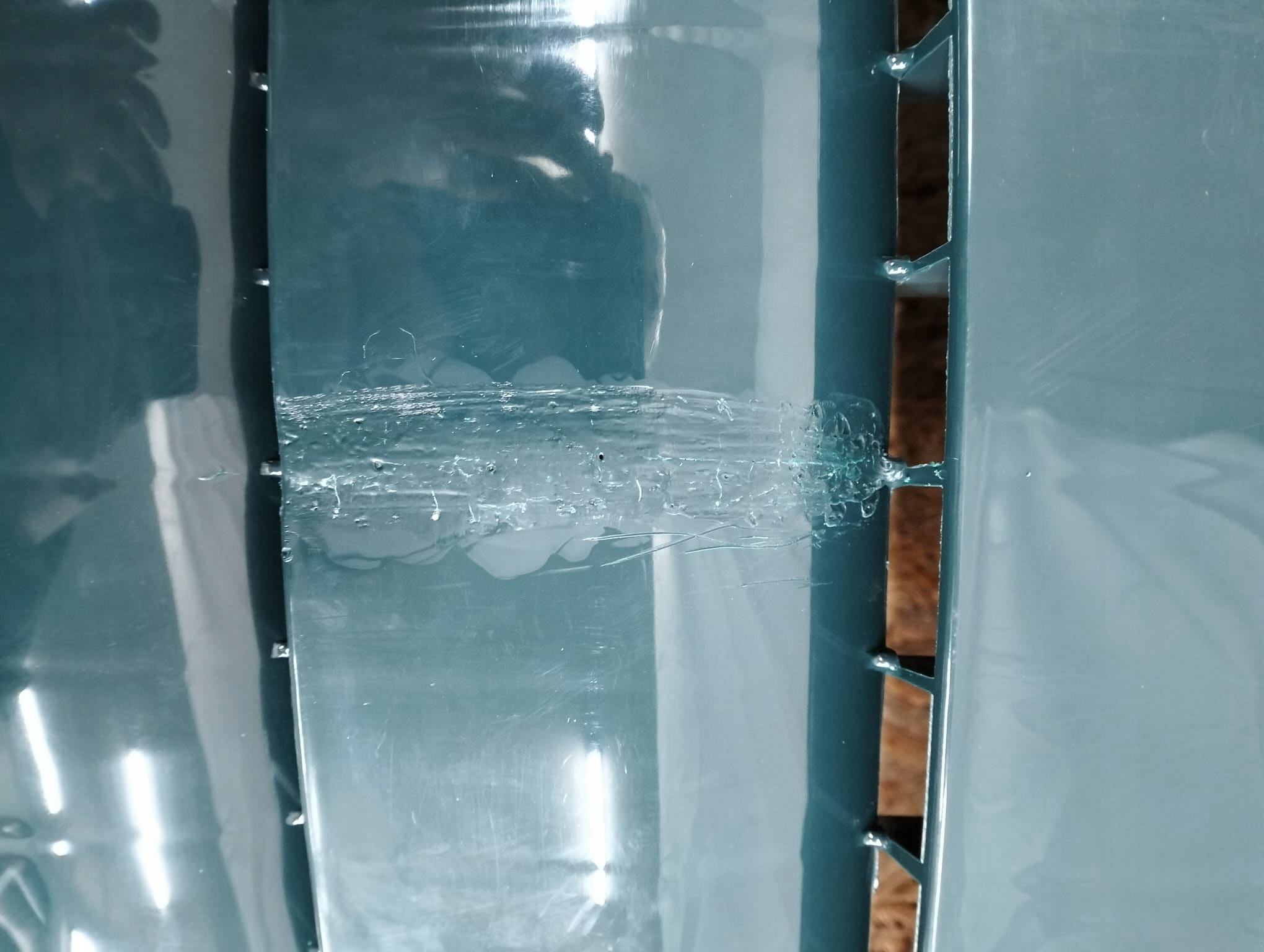 стан продукту: новий, мав дві тріщини (які були відремонтовані); Пошкоджені засувки в одній із сторін