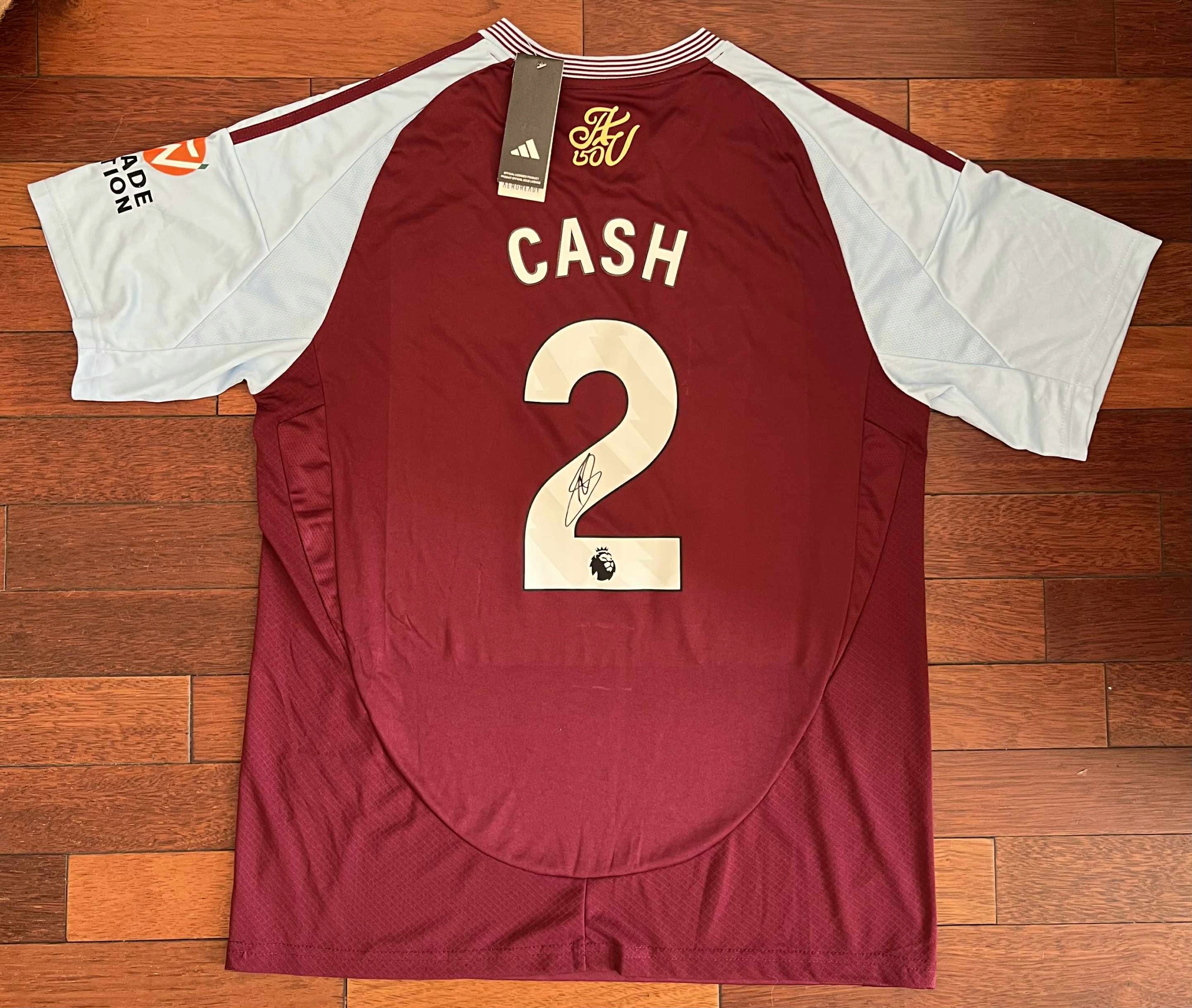 Matty Cash Aston Villa t -сорочка з автографом + сертифікат справжності
