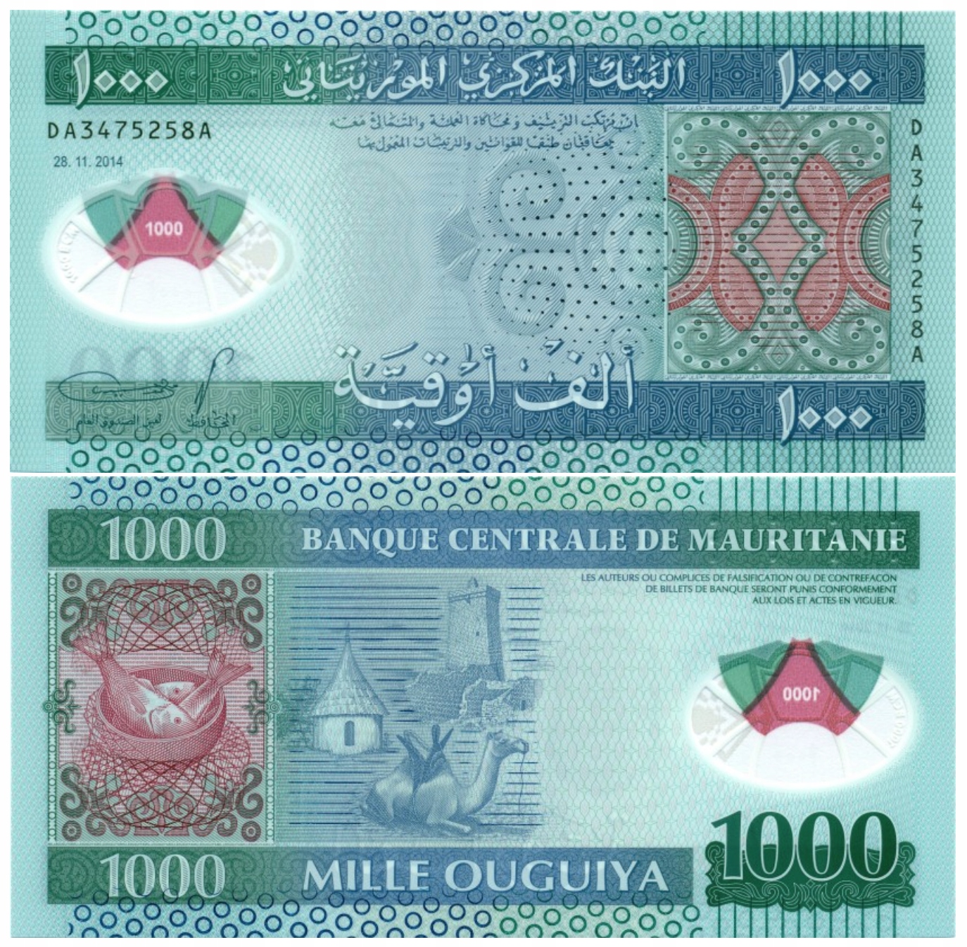 Maurretani 1000 Ouguiya 2014 11.28 P-19 UNC Polmer