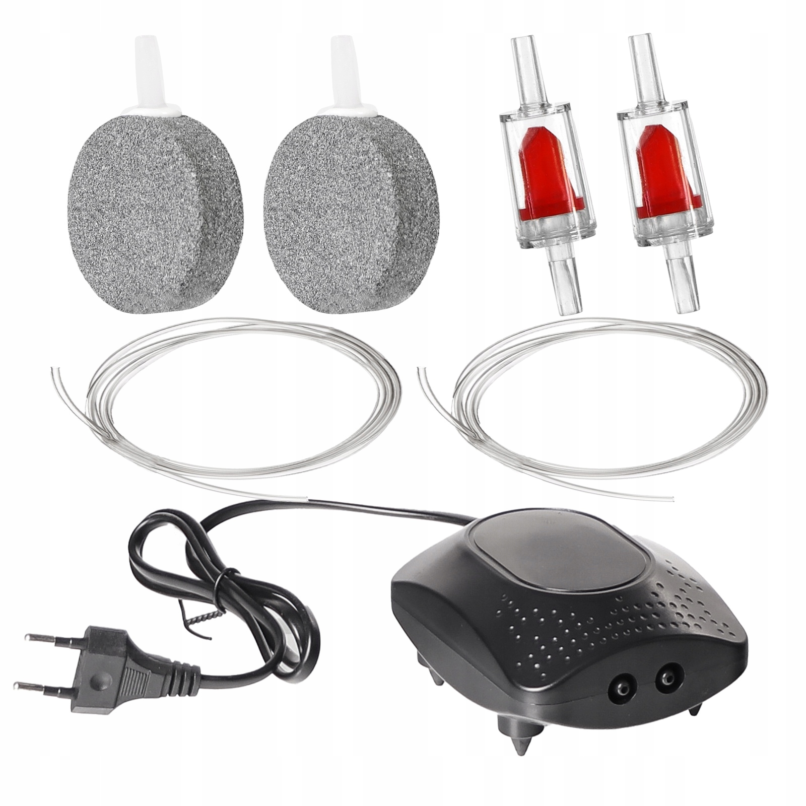 Насос має два виходи. Кожен може підтримувати інший повітряний камінь або навіть два акваріуми.