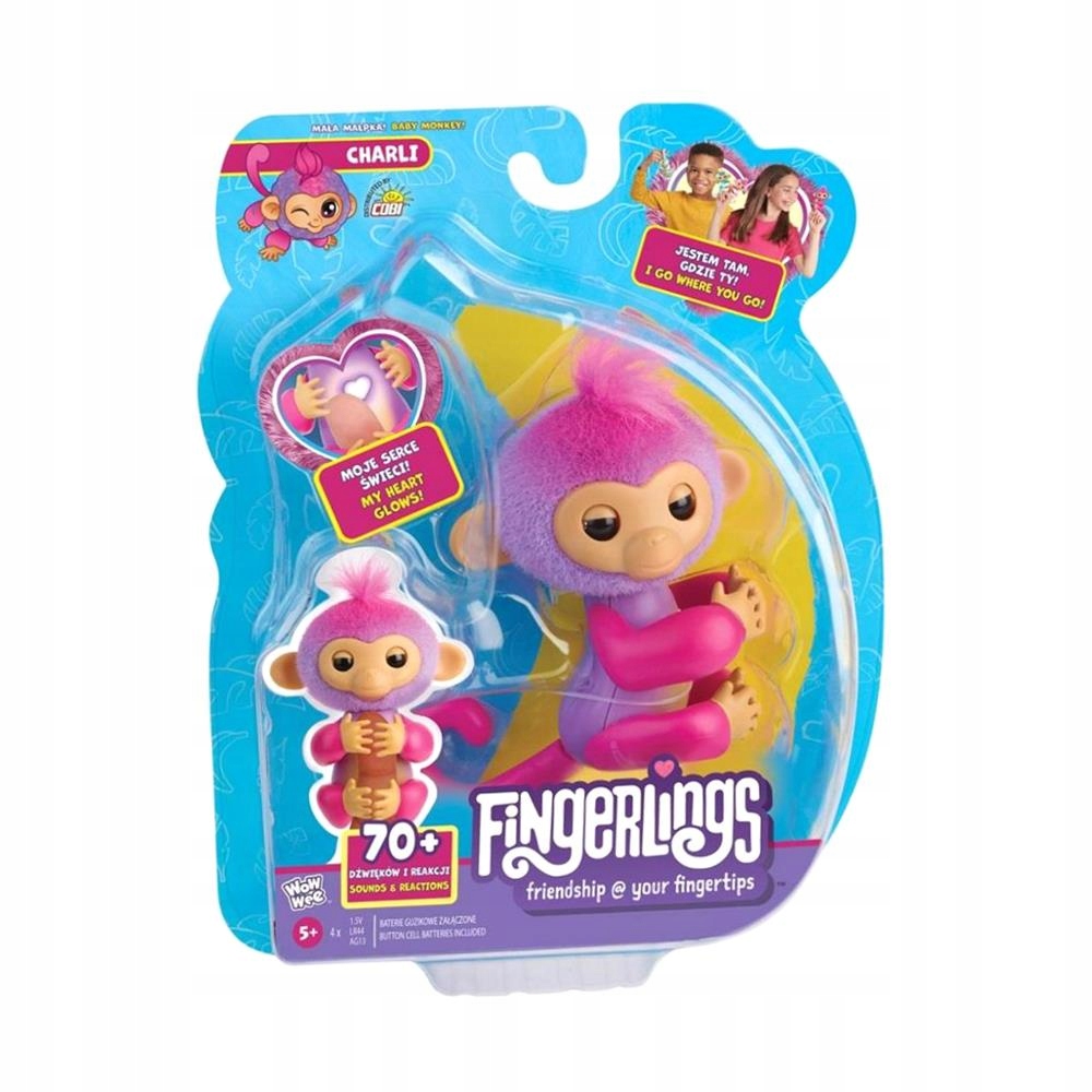Дивовижні мавпи Fingerlings повернулися та ще миліші! Тепер у них понад 70 звуків і реакцій! Коли ви одягнете мавпочку на палець, її серце засвітиться! Торкніться її обличчя пальцем, і вона поцілує вас, почує, як їсть, або дізнається про інші її реакції. Погладьте її по голівці, і вона вас знову чимось здивує! Мавпочка любить висіти вниз головою! Ви також можете пограти з нею в підглядання. Потрясіть мавпочку, це просто весело, і ви дізнаєтеся її подальшу реакцію! Мавпочка розмовляє милою мавпячою мовою. Неймовірна забава, навіть коли ви заколисаєте мавпочку, вона здивує вас чимось іншим! Понад 70 звуків і реакцій відповідають її характеру. Відкрийте унікальну особистість кожної мавпи. Кожна мавпа поводиться по-різному: унікальні звуки. Різні моделі руху. Йому подобаються різні речі, такі як висіти вниз головою, пестити, цілувати тощо. Серце починає світитися, коли ти одягаєш мавпочку на палець! Реагує на дотик - погладжування по голові, дотик до обличчя. М'яке хутро на голові