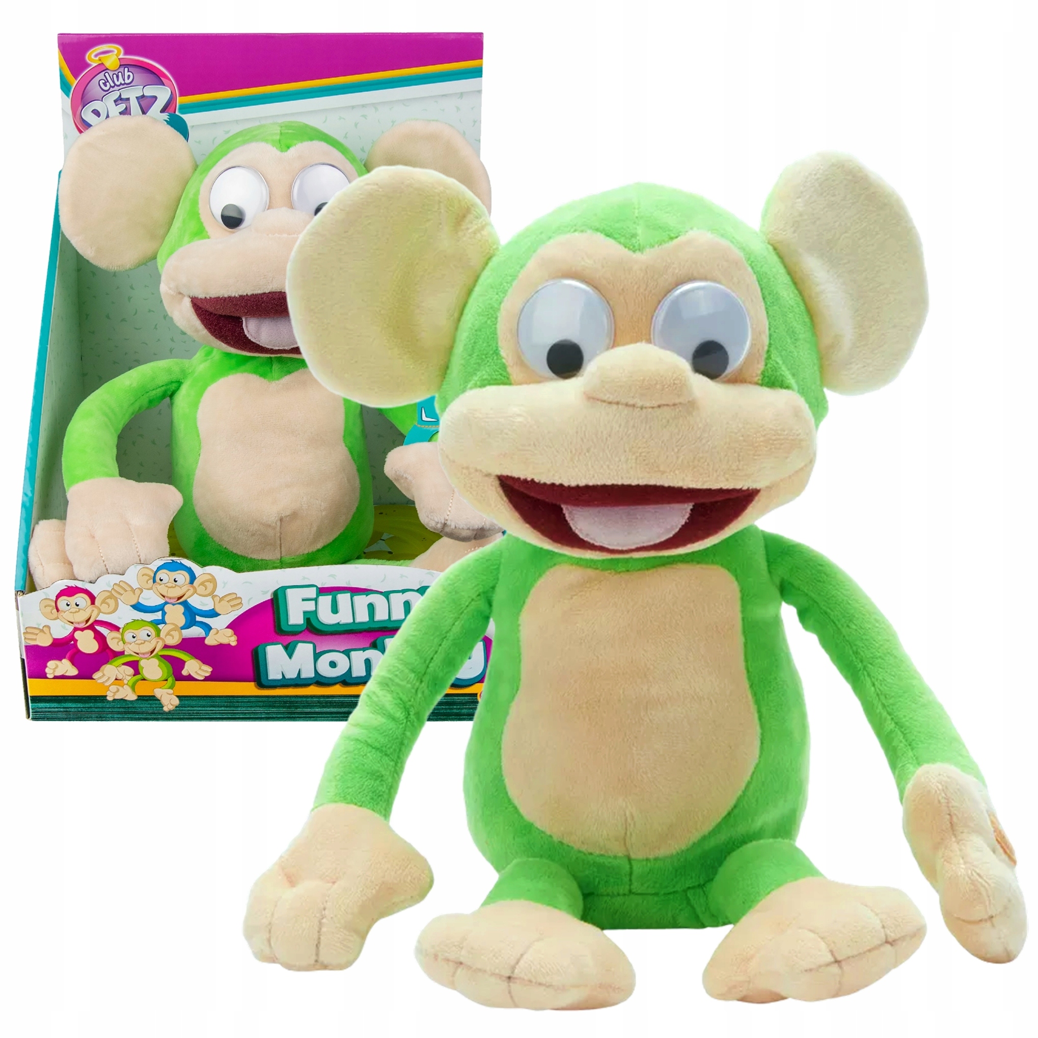 🟢Інтерактивна мавпочка має великі вуха, зелену шерсть, широку усмішку та довгі лапи.
