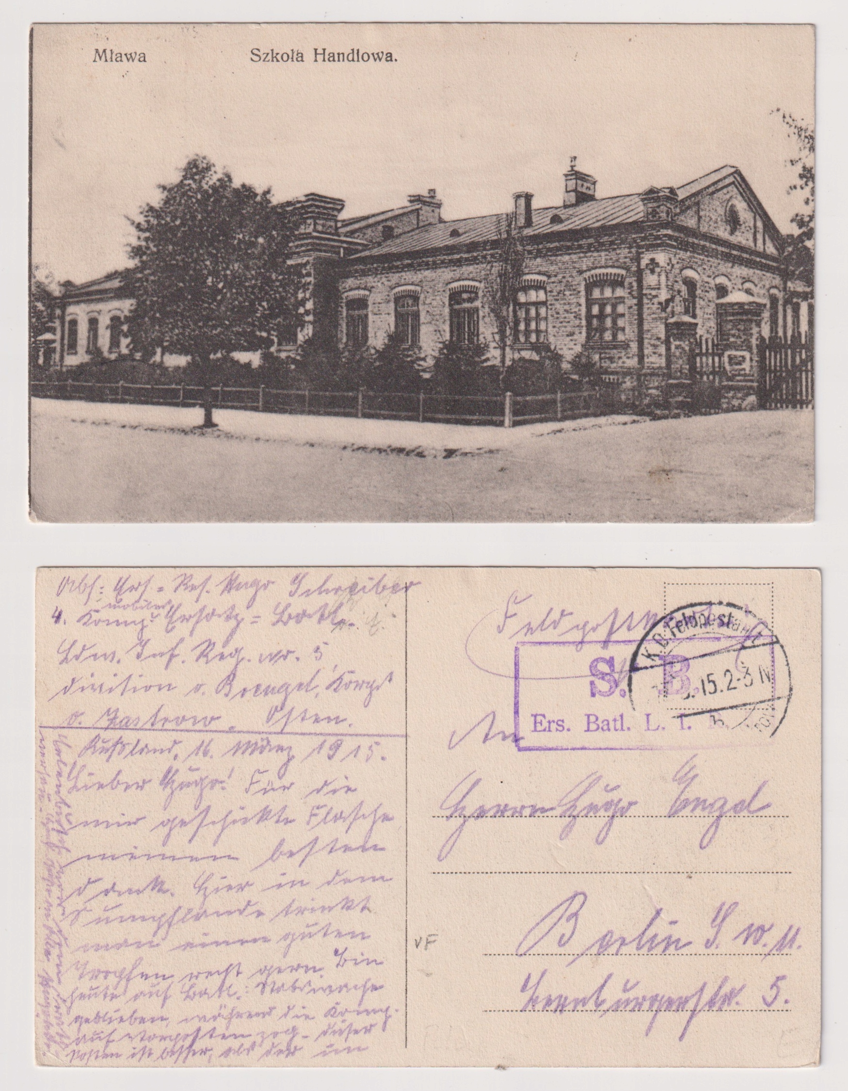 Mława Szkoła Handlowa 1915 feldpost