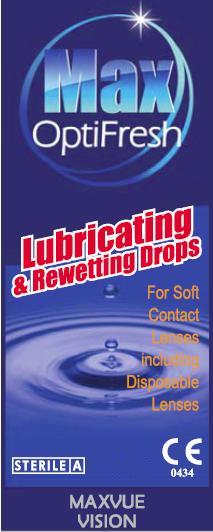 Max OptiFresh забезпечує тривалий комфорт і миттєве полегшення для втомлених і сухих очей. Зволожуючі краплі для очей Нові краплі Max OptiFresh призначені для користувачів усіх типів м'яких контактних лінз. Спеціальна формула на основі гіалуронату натрію (та сама речовина, що і в Aqify Ciba Vision) зменшує сухість і подразнення очей, викликані пилом, забрудненням повітря або втомою, покращуючи комфорт носіння контактних лінз протягом дня. Краплі полегшують симптоми сухості очей, пов’язані з перебуванням у місцях з опаленням або кондиціонером.
