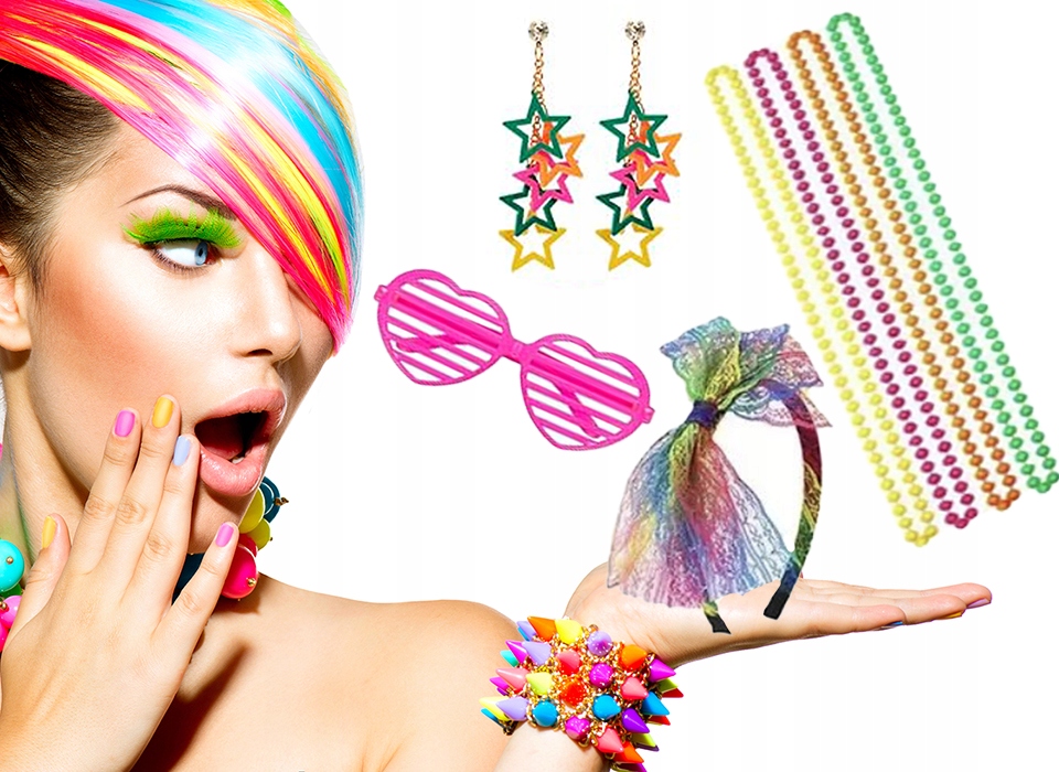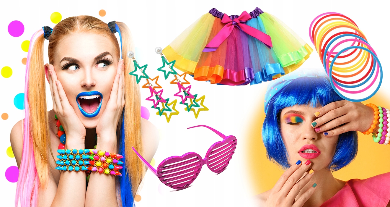 MAX STRÓJ KOSTIUM ZESTAW DISCO LATA 80 RAINBOW NEON 9w1 balovelove
