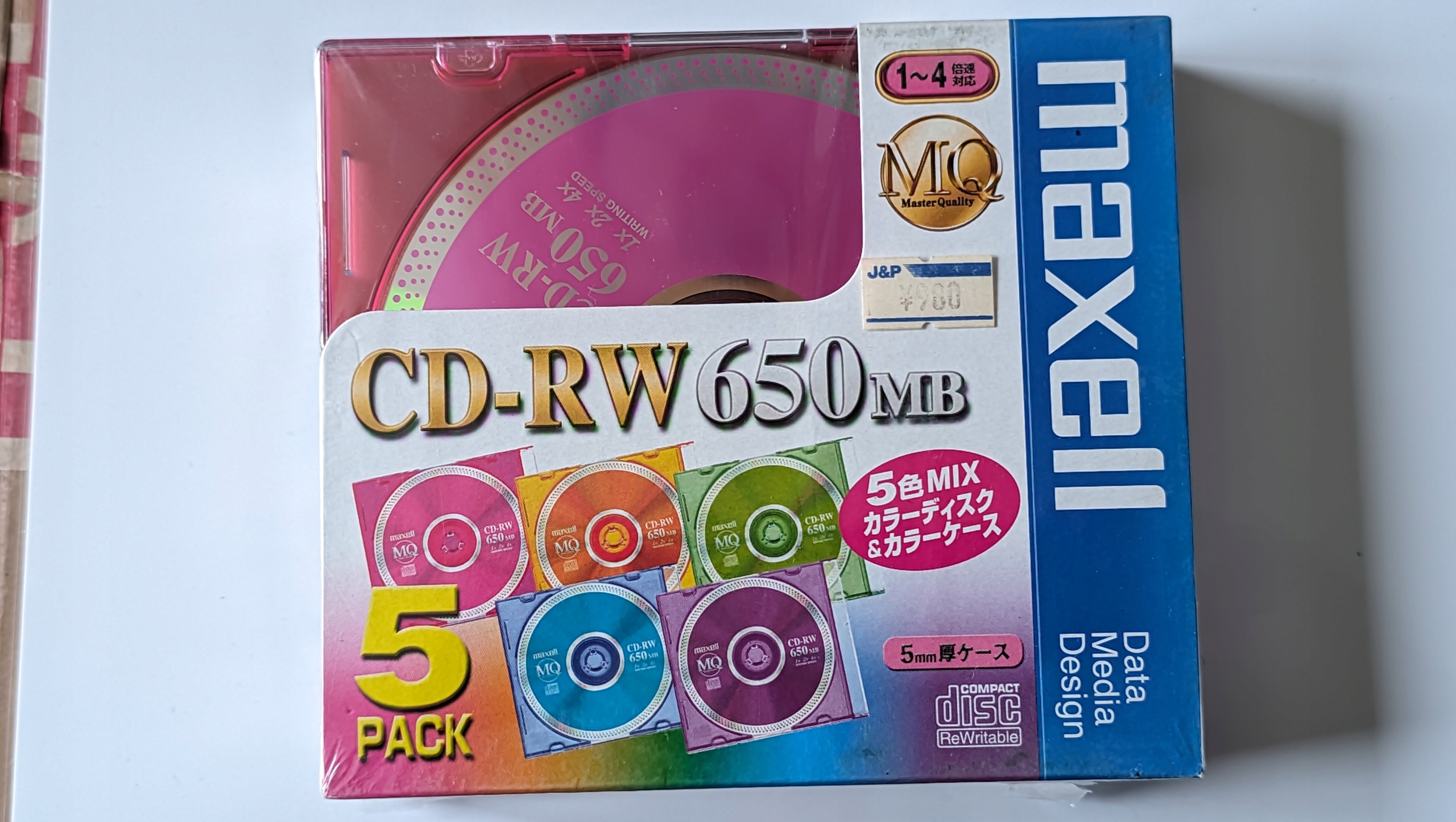 Maxell CD-RW MasterQuality 650MB Color Mix 1X-4x Японія 5PACK