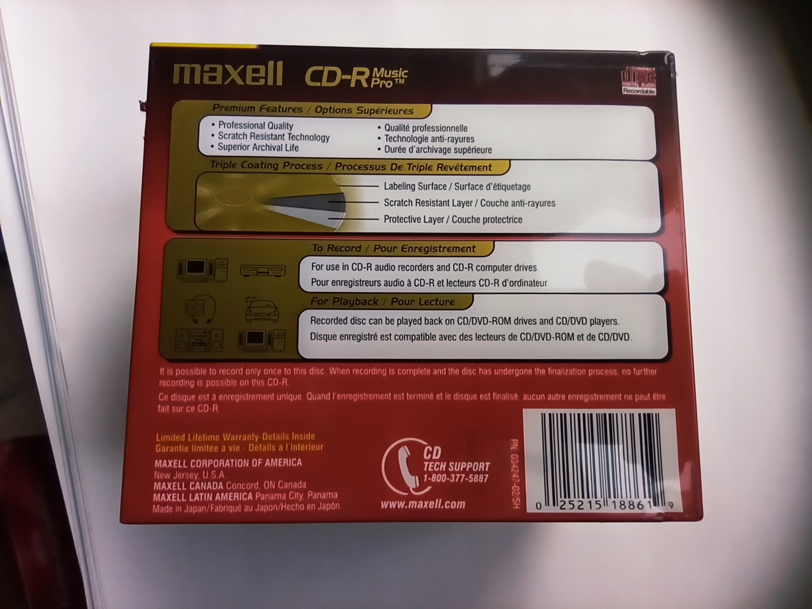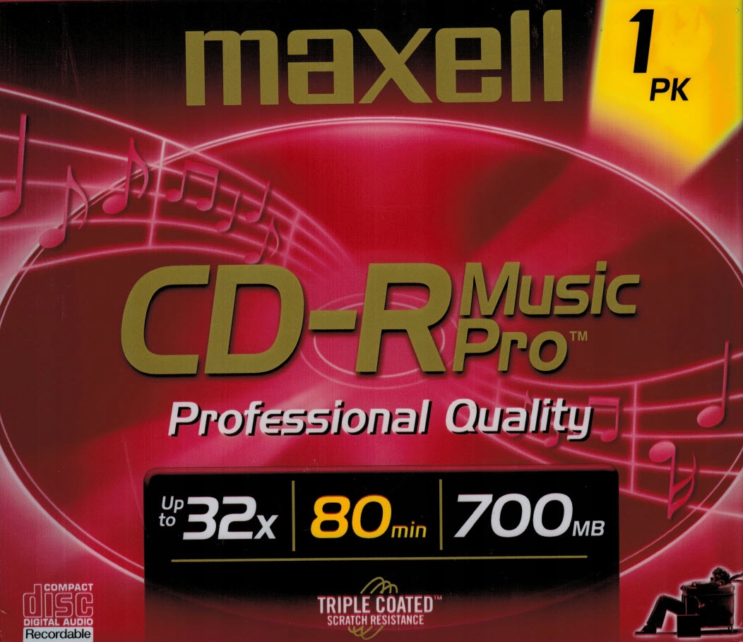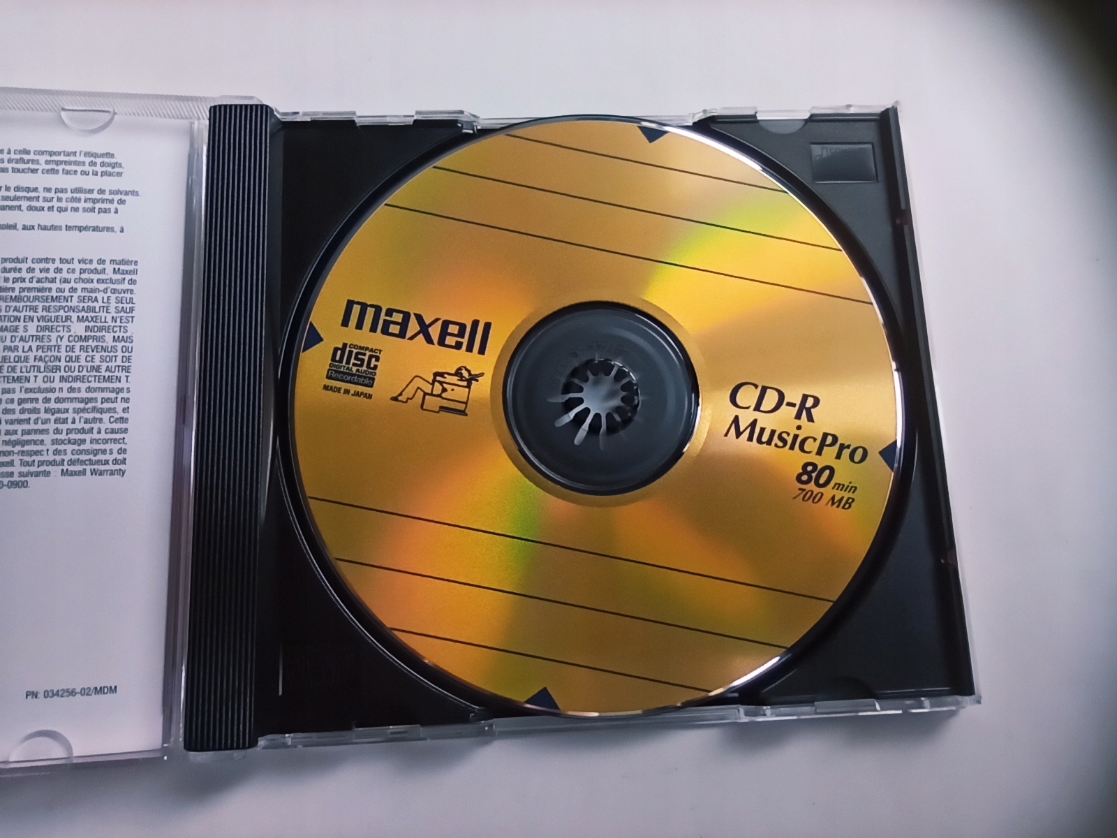 Maxell Music PRO CD-R Audio 1 шт \ стаціонарні рекордери Зроблено в Японії - CD-R Audio носії в цій версії ніколи не були доступні на європейському комерційному чи оптовому ринку. Один із останніх аудіодисків CD-R, вироблених на найсучаснішому пресовому заводі у світі Taiyo Yuden у Японії, на традиційній натуральній несинтетичній підкладці – Cyanine