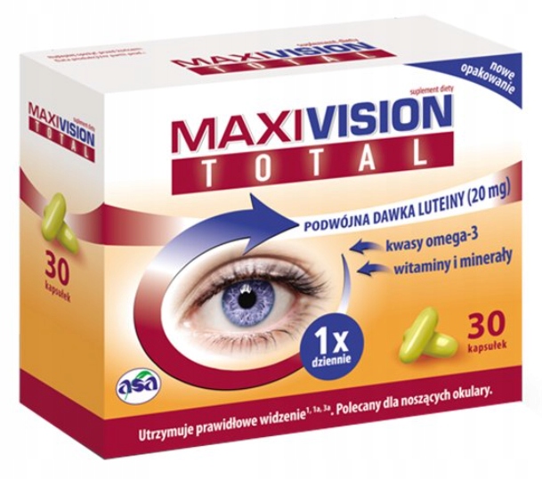 Оскільки наш щоденний раціон часто містить низький вміст омега-3 ненасичених жирних кислот (DHA, EPA), і наше тіло не може виробляти їх самостійно, дуже важливо надавати їх організму, наприклад, у формі спеціальних дієтичних добавок, таких як MaxiVision Total.
