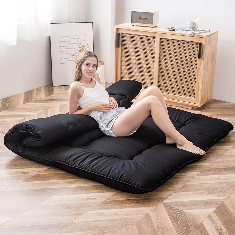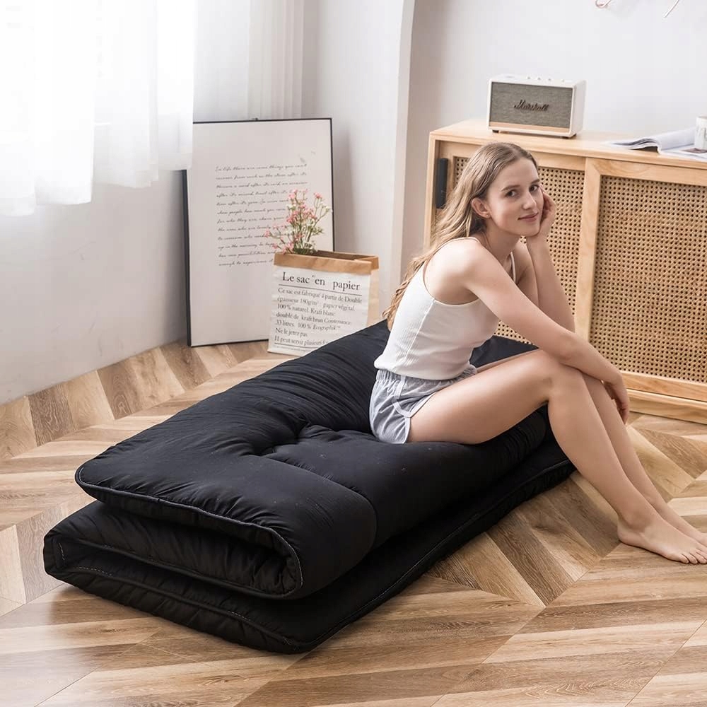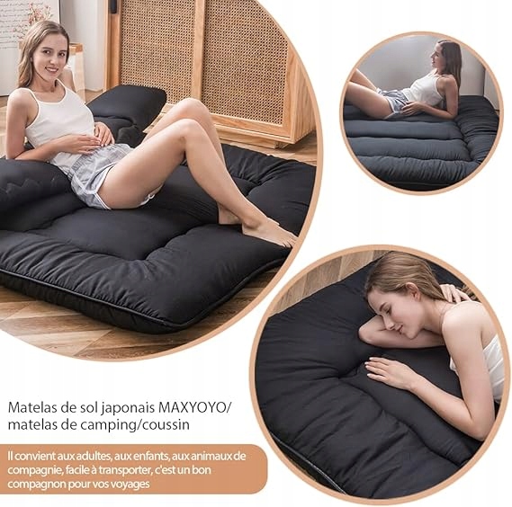 Японський матрац MAXYOYO, футон, товсте татамі, спальник, розкладний, згортається, для спального місця, наматрацник, шезлонг, подушка, односпальний розмір 190 довжини. х 90 ширина х 10 гр. см, чорний