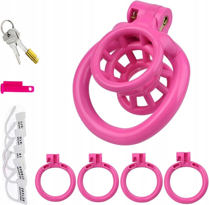 MAŁY RÓŻOWY PAS CNOTY INVERTED CAGE KLATKA NA PENISA SISSY CAGE 4 ORINGI