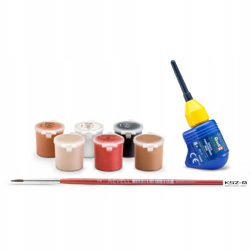 - У набір входить модель, клей, 6 основних фарб (05, 08, 36, 85, 87, 88) і пензлик