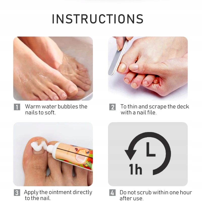 ⏺3. Нанесіть мазь до заражених нігтів, 2 ~ 4 рази на день.